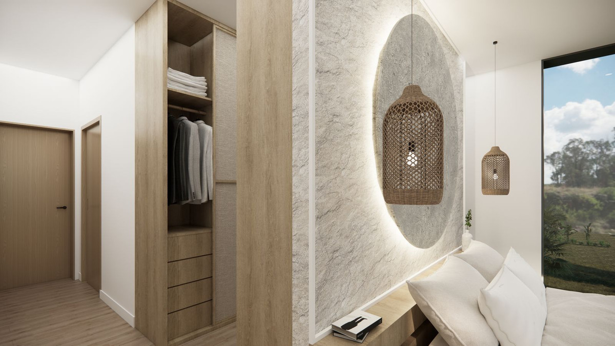 4 eller 5 soveværelser – kan vælges før byggeriet går i gang – alle med terrasser og udsigt til havet eller bjergene (nogle med udsigt til Stupaen)
