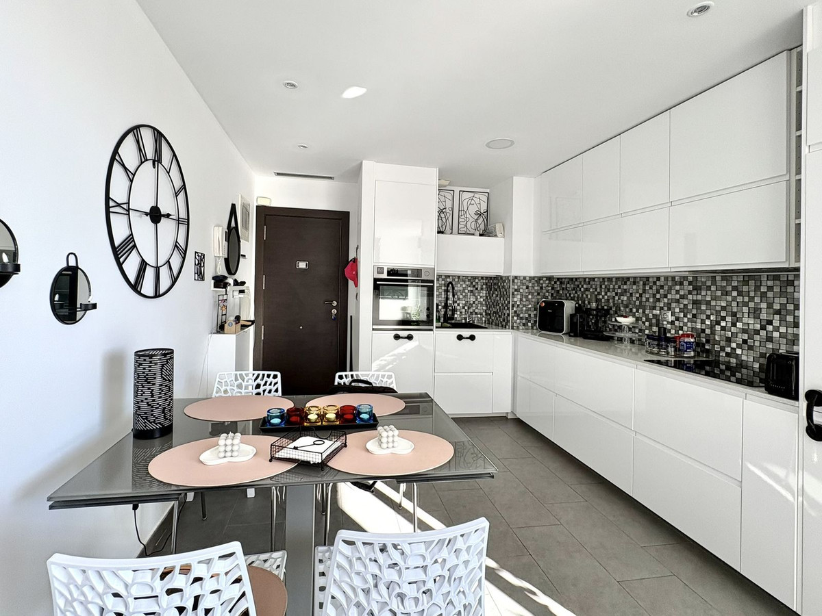 The highlight of the property is its 13 sqm terrace, where you can relax and enjoy breathtaking views of the park and the sea. Inside, the apartment features a brand-new IKEA kitchen, designed with glossy white cabinets and ample storage space, making it both stylish and functional.