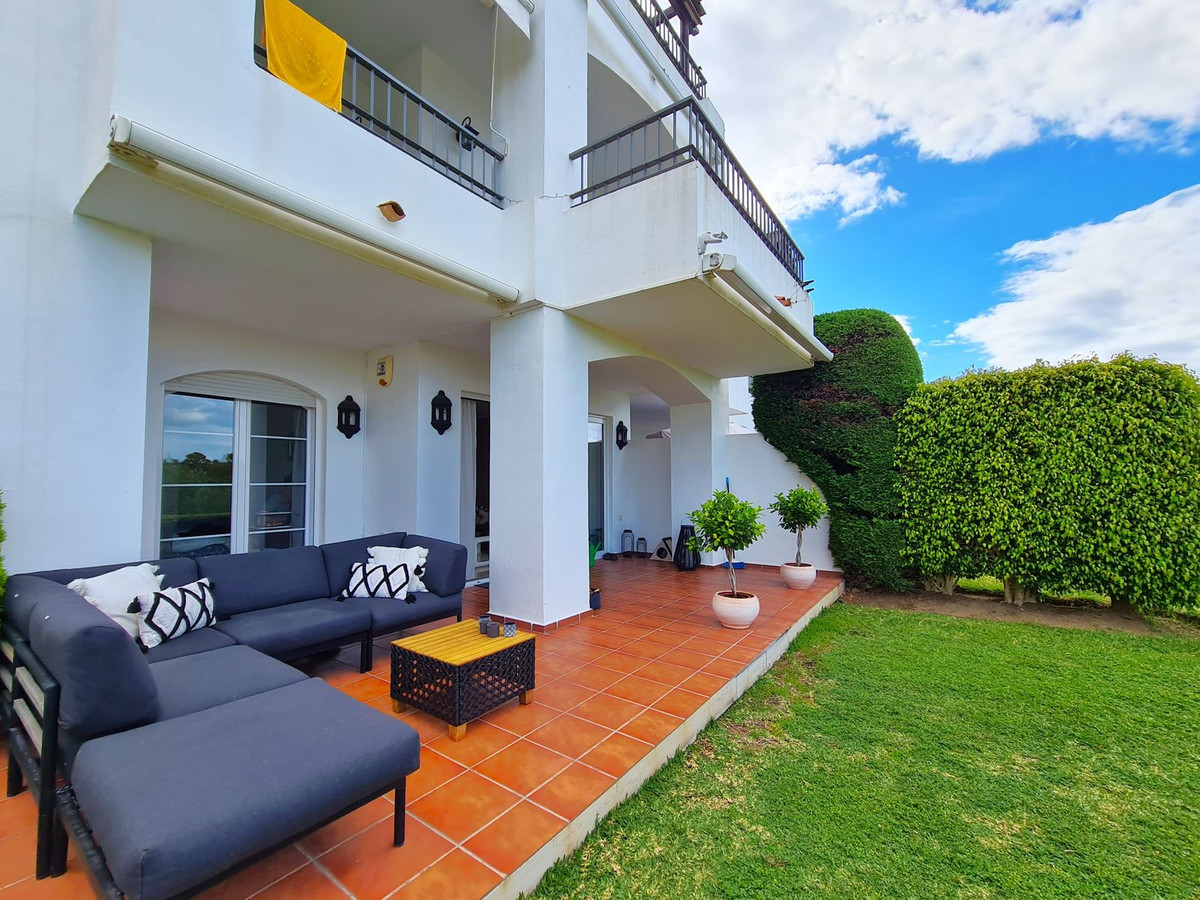 Denne lejlighed ligger i et roligt og sikkert boligområde, omgivet af natur, og har gode forbindelser til motorvej AP7, som forbinder hele Costa del Sol. Kun 5 minutters kørsel fra Guadalmina Alta og den prestigefyldte Atalaya-skole, med stranden, supermarkeder, apoteker og restauranter 10 minutter væk. Ejendommen er blevet fuldstændig renoveret i år 2025, så alt er så godt som nyt. Når vi træder ind i lejligheden, finder vi en hall, der fører til den rummelige stue-spisestue med smuk udsigt over haven, som også har adgang til en stor, delvist overdækket terrasse. Den har et rummeligt, helt nyt, moderne køkken udstyret med high-end apparater og med adgang til det separate vaskerum. Ejendommens soveværelser og badeværelser er fordelt via en korridor. Det rummelige soveværelse har et stort indbygget klædeskab med adgang til og udsigt over terrassen/haven. Det har også et fuldstændig renoveret, moderne badeværelse med bruser og et vindue, der giver masser af naturligt lys og ventilation. De to enkeltværelser har indbyggede skabe, er lyse, og det ene af dem har adgang til haven. Det andet badeværelse er placeret ved indgangen til fordeleren, så det er forbundet med husets fællesarealer (stue/spisestue/køkken) og ligger ved siden af de to enkeltværelser. Dette komplette badeværelse har også et brusebad. Ejendommen nyder godt af bekvemmeligheden ved at have en privat parkeringsplads, udover at nyde de fælles haver og saltvandspools. VI ANBEFALER DIT BESØG!!