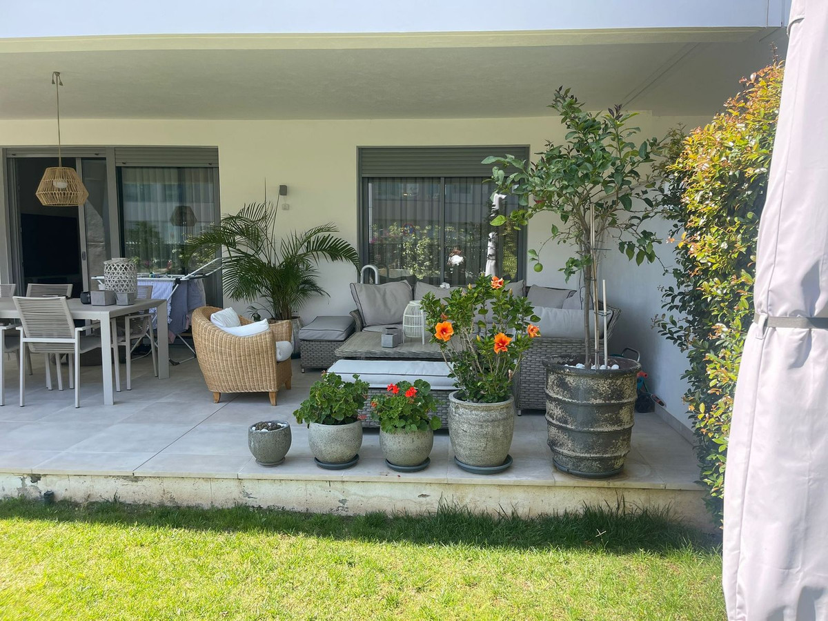 This stunning 3-bedroom, 2-bathroom apartment offers a perfect combination of style, space, and comfort. Featuring a large private garden and a large covered terrace, it's ideal for relaxing, entertaining, or simply enjoying the Mediterranean climate year-round. Inside, you'll find a modern, fresh interior with a spacious layout, high-end finishes, and a fully equipped modern kitchen with a separate utility area.
