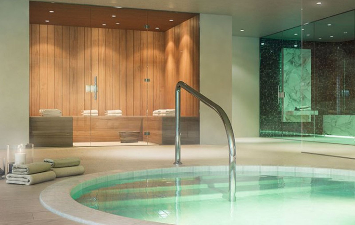 A serene indoor spa featuring a heated swimming pool, jacuzzi, sauna and steam room