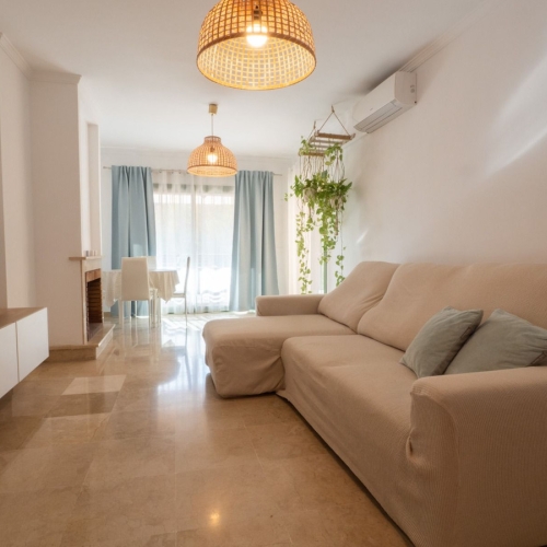 Her får du en sjælden følelse af plads og åbenhed i en gennemført og smagfuldt renoveret lejlighed, hvor to tidligere lejligheder er blevet forenet til ét generøst og veldisponeret hjem. Lejligheden byder på enestående panoramaudsigt over Middelhavet og de omkringliggende bjerge – og ligger blot 15 minutters gang fra stranden og alle nødvendige faciliteter.