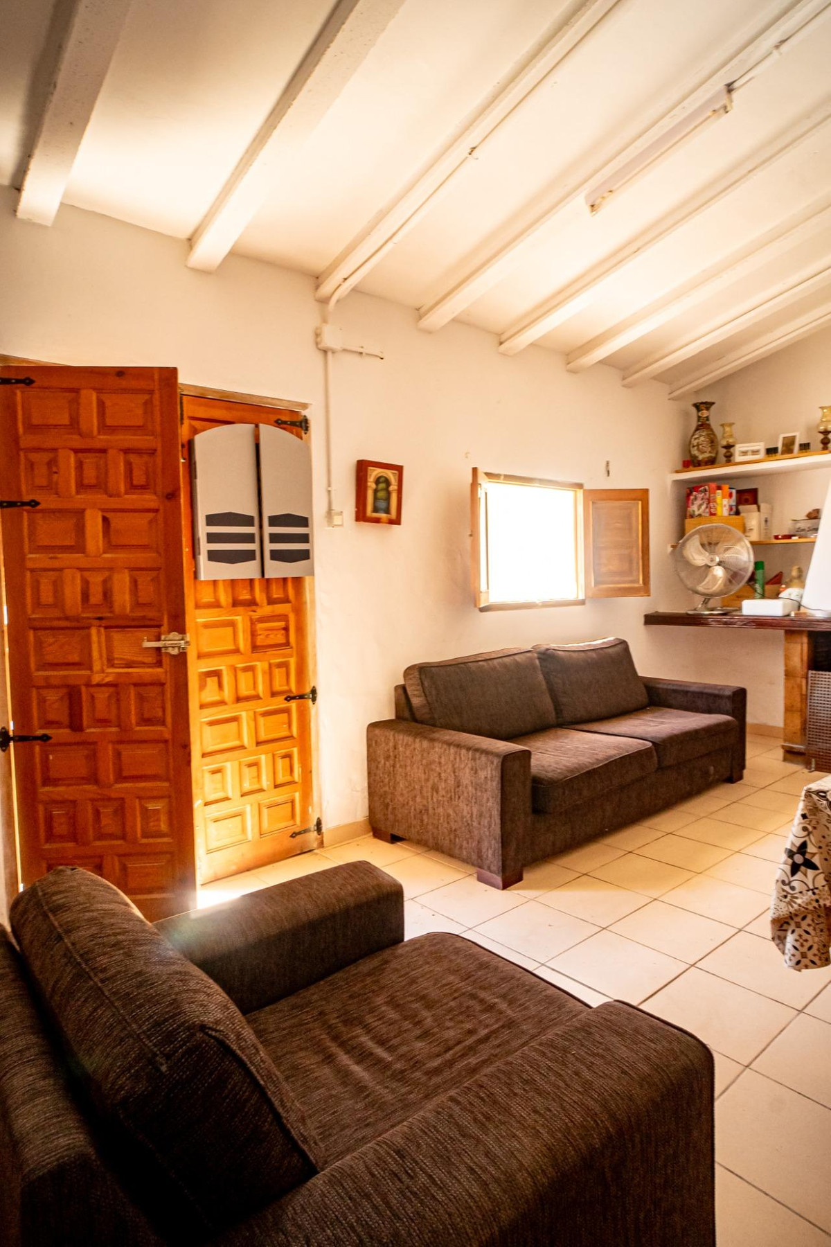 This house has a lot of land and is located in a quiet area, 6 kilometers from Relleu and 22 kilometers from Villajoyosa or El Campello. The house is in good condition, with electricity and well water. It has a living/dining room with a fireplace, a kitchen, 2 bedrooms, a utility room that can be used as a small bedroom, with access to the garage and a renovated full bathroom. Everything is on one level, and the plot, which has views of the mountains and the surrounding countryside, is flat and very private.