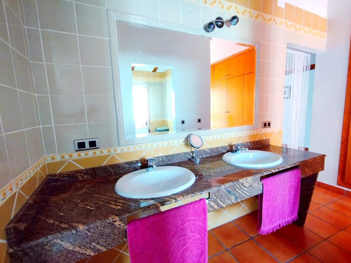 The house is surprisingly large and in good condition. On the first floor, there's a spacious living room, an open kitchen, a large bedroom, a laundry room, a full bathroom, and access to the garage. From the kitchen, you can step out onto a sunny and private patio that, due to its uniqueness, can be divided into several areas. Currently, there's a section with walls for hanging clothes, as well as two covered zones. Upstairs, there are two large bedrooms that share a full bathroom, along with the master bedroom. The master bedroom is like a separate apartment, spanning approximately 60 square meters, complete with a walk-in closet and a full bathroom. From its window, you can see the sea and the Peñon de Ifach. There is Aire Condition with heat and cold in the house.