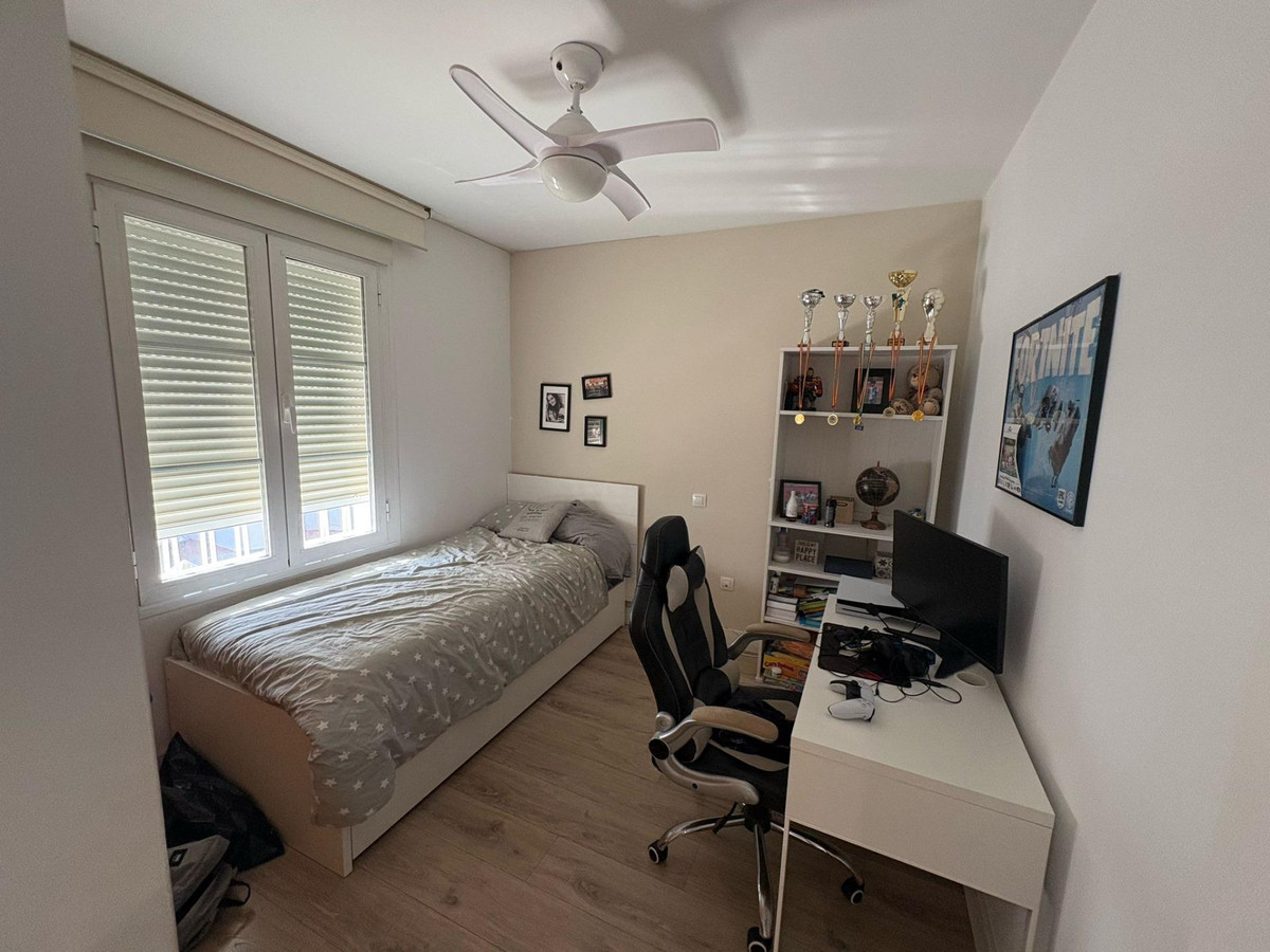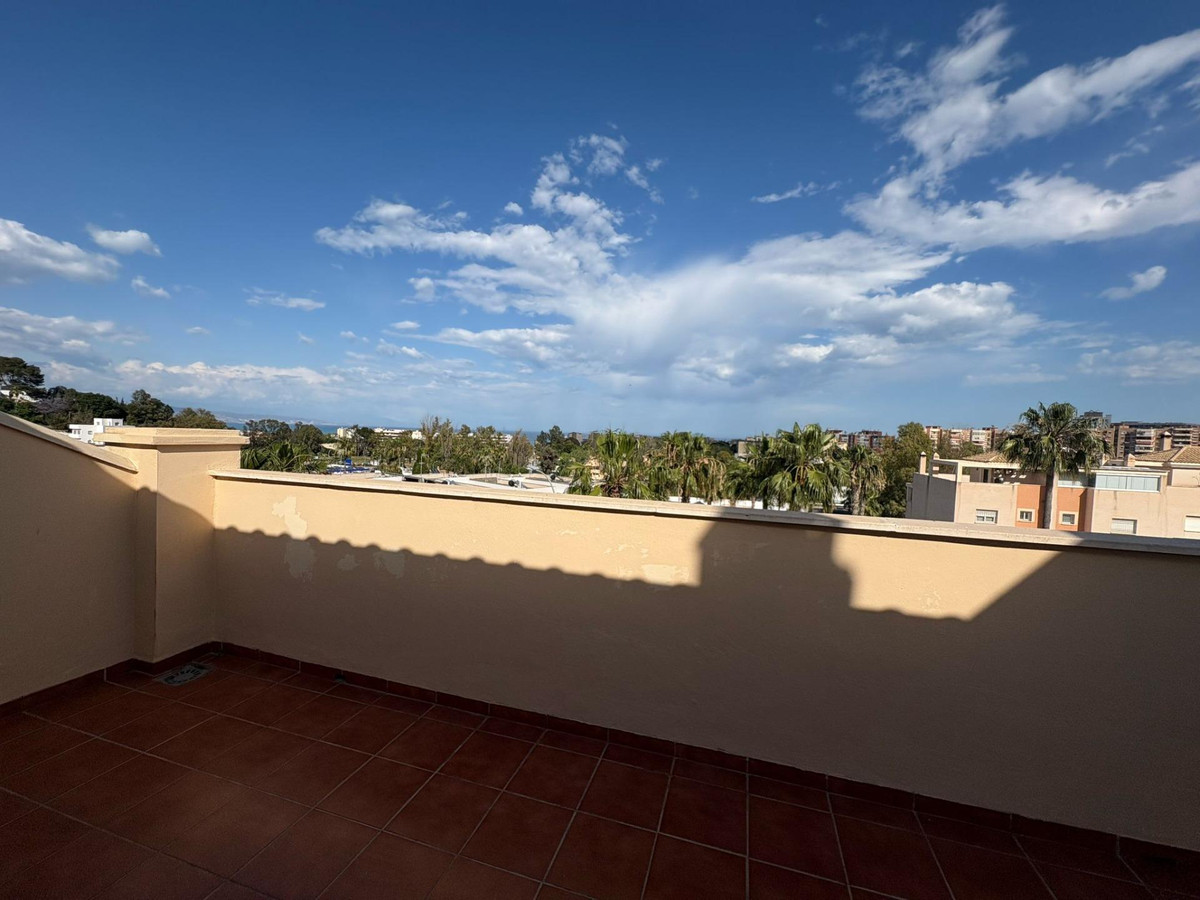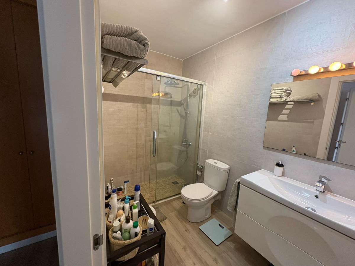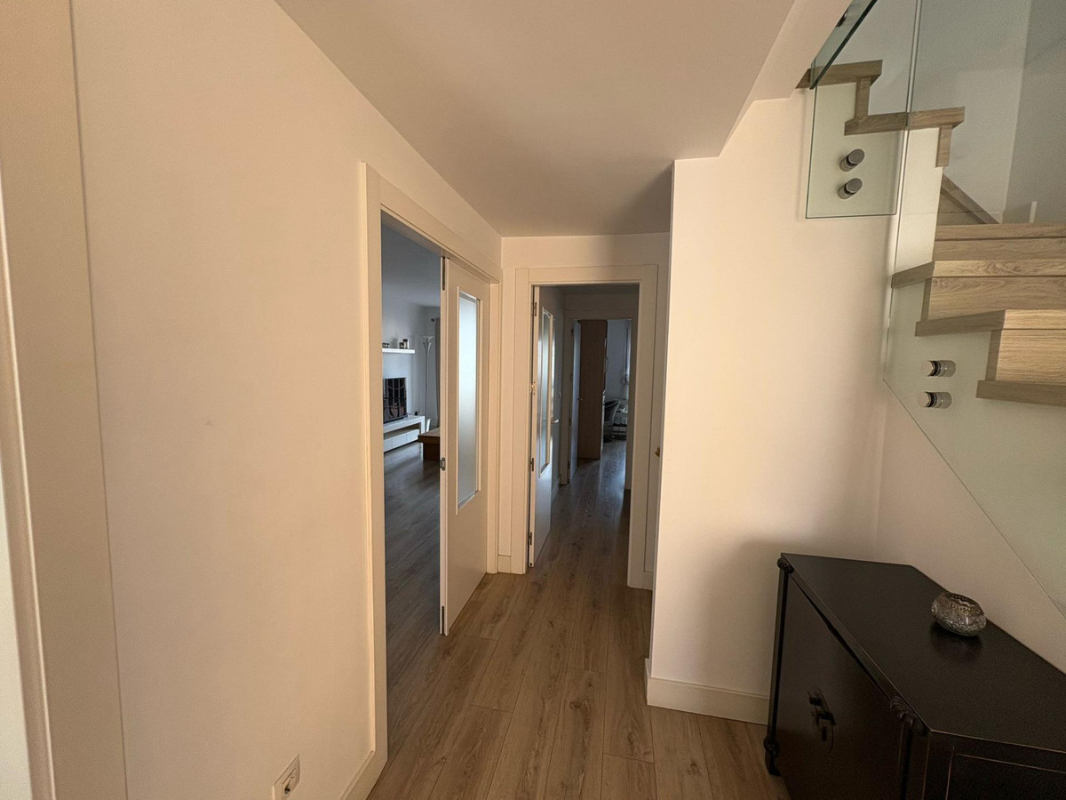Upon entering, you're welcomed by a spacious and bright foyer featuring a modern staircase with a tempered glass railing, adding a contemporary touch to the home. The main floor offers a functional layout with a fully equipped kitchen, separate laundry room, a full bathroom, one bedroom, and a spacious living-dining area with direct access to a generous terrace. From here, you can enjoy breathtaking open views of the Bay of Málaga — a true daily luxury.