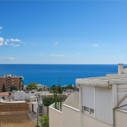 Upstairs, you'll find three well-sized bedrooms, all with built-in wardrobes. Two of these bedrooms have direct access to a second terrace with panoramic views. This floor also includes two full bathrooms, one of them en-suite.