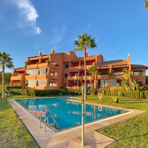 Partially renovated 25 m² studio located in an exclusive gated community right on the beachfront. Situated in one of Marbella's most sought-after areas, this charming property offers breathtaking sea views — you'll feel like you're on a boat!