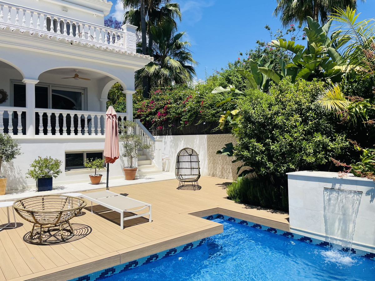 Experience the best of modern Mediterranean living in this fully renovated smart villa for sale in the exclusive area of Rocio de Nagüeles on Marbella's Golden Mile offering 5 spacious bedrooms including 3 on the main floor and 2 in the fully finished basement level with spa and jacuzzi facilities perfect for relaxation and wellness at home.