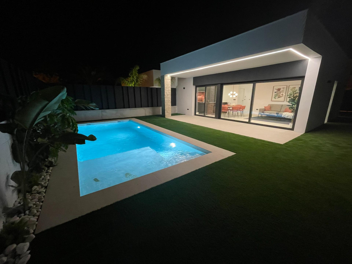 The price includes a 6x3 meter private swimming pool, a fully equipped kitchen with white goods, natural stone details on the facade, modern bathrooms with quality fixtures, and built-in wardrobes in the bedrooms.