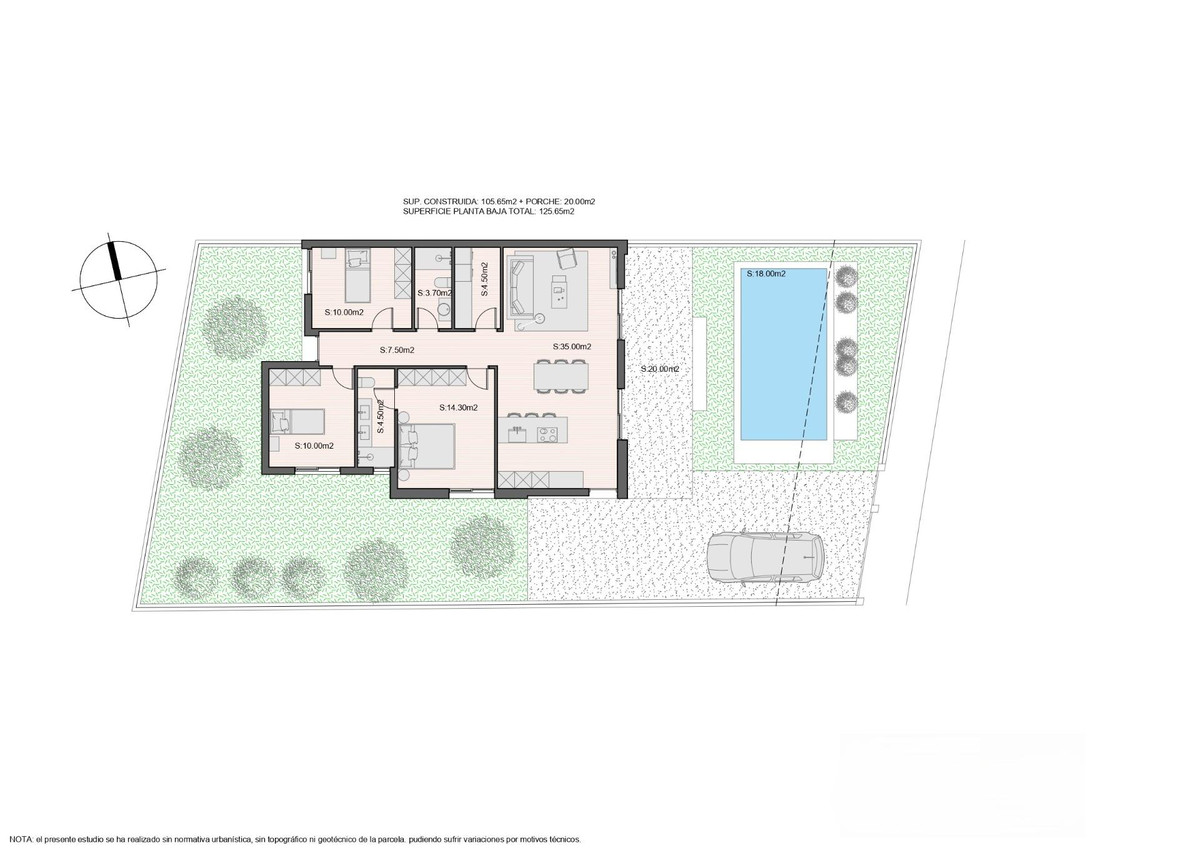 The villa sits on a 327 m² plot, offering generous outdoor space for relaxation and entertaining. A 20 m² covered porch provides a shaded area for outdoor dining, while a private 18 m² swimming pool invites you to enjoy the sunny days. The property also includes a parking area within the plot for added convenience.