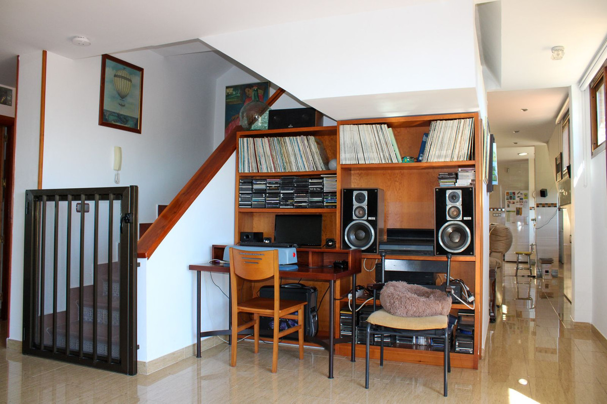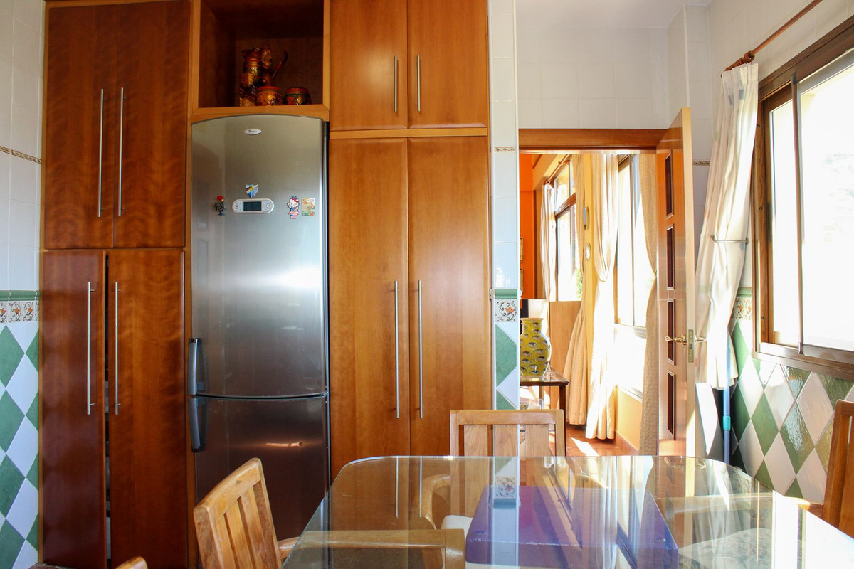Ved siden af stuen har vi et fuldt udstyret køkken, også med en dejlig udsigt over bjergene. Fra køkkenet er der også en trappe til underetagen. Derudover har vi på denne etage et badeværelse og et soveværelse, dette soveværelse bruges i øjeblikket som kontor.