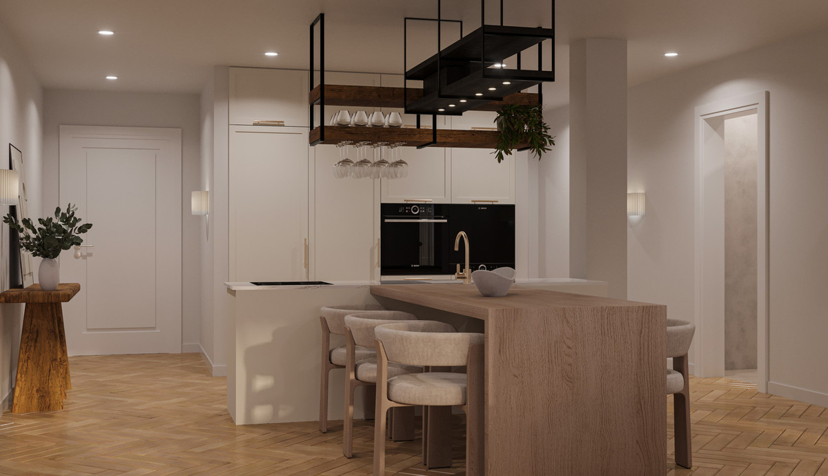 The interiors have been thoughtfully reimagined to blend contemporary elegance with everyday comfort. The open-plan kitchen, finished with premium materials and sleek appliances, flows seamlessly into a bright living space and onto a generous south-facing terrace—perfect for morning coffee, al fresco dining, or simply soaking in the coastal views.