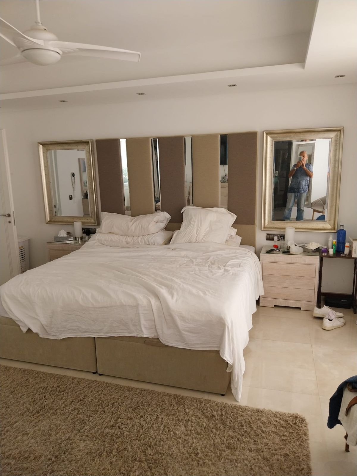 A second main bedroom suite, also with walk-in wardrobe and ensuite, shares this floor with a bright, open area for additional storage and a sun terrace complete with jacuzzi, outdoor hot/cold shower, and chill-out zone. Glass doors, open sky, and natural breezes make this a true sanctuary.