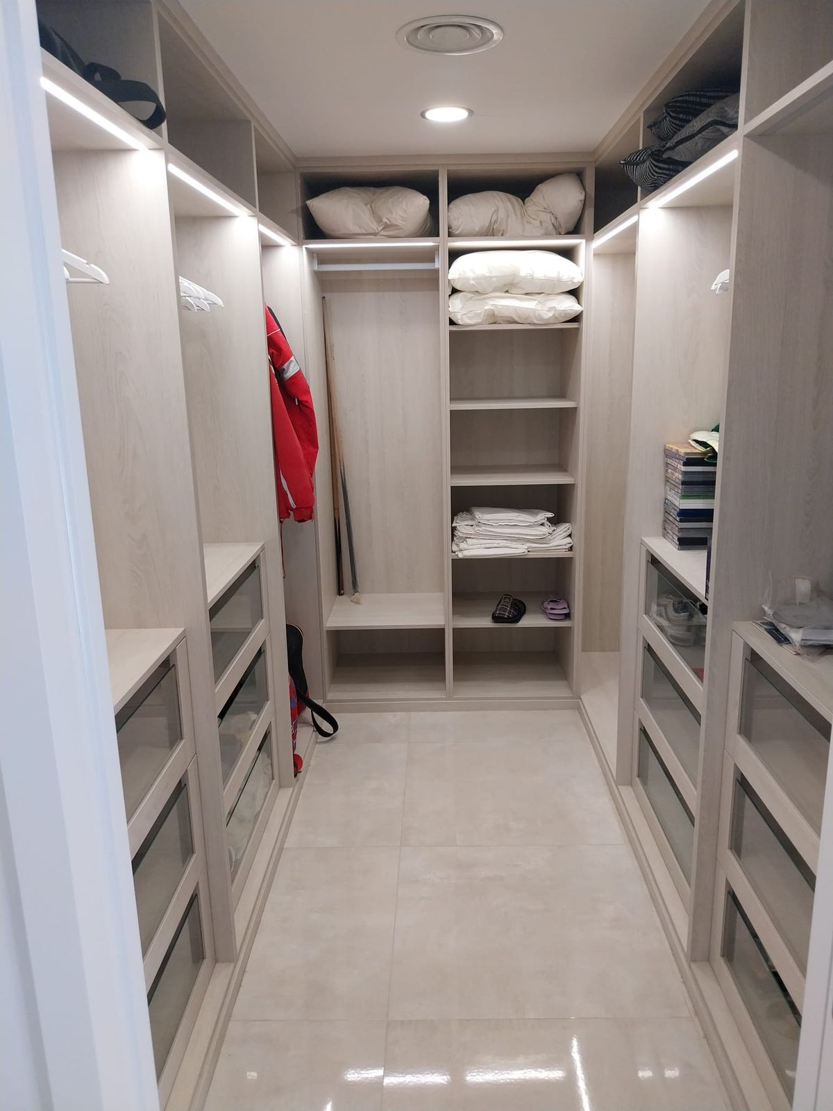 The first main bedroom suite features its own walk-in wardrobe, ensuite bathroom, and access to a wide passageway with extensive built-in storage. The highlight here is the entertainment terrace, blending covered and open-air spaces and equipped with plasma screen, BBQ, second kitchen, LED lighting, and laundry room. It's a space made for alfresco living under the sun or stars.