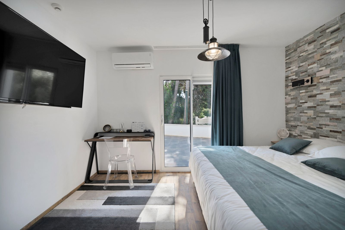 From the reception, you can access the sauna, jacuzzi, swimming pool, rooms, and kitchen-dining area. The first floor boasts six double en-suite bedrooms, a guest toilet, a large dining room, and a fully equipped kitchen, both with serene views of the pool and terrace access. The second floor offers nine double en-suite bedrooms and one quadruple en-suite bedroom, all with spectacular sea and open views.
