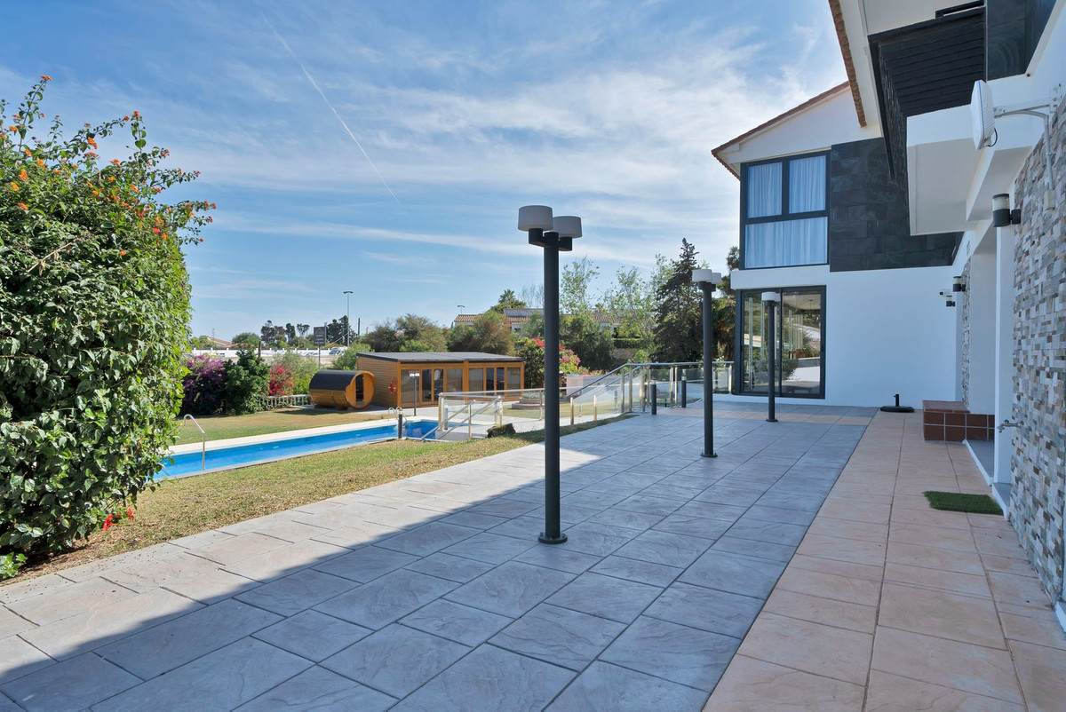 The villa provides secure parking for two cars and additional open parking for six more vehicles, along with a ramp for those with reduced mobility. Security features include an alarm system, security cameras, a monitoring area, and room access via a magnetic card system. Solar panels power the entire villa, ensuring excellent energy efficiency. The property is move-in ready with no renovations needed and holds an active tourist license.