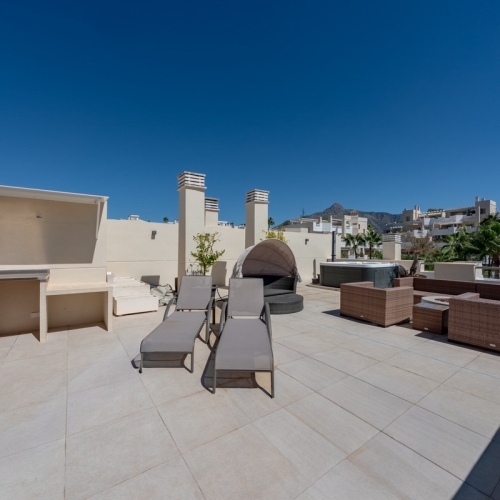 Welcome to this stunning 3-bedroom, 3-bathroom duplex penthouse, located in the prestigious gated community of Medina de Banús, just a short walk from the famous Puerto Banús.