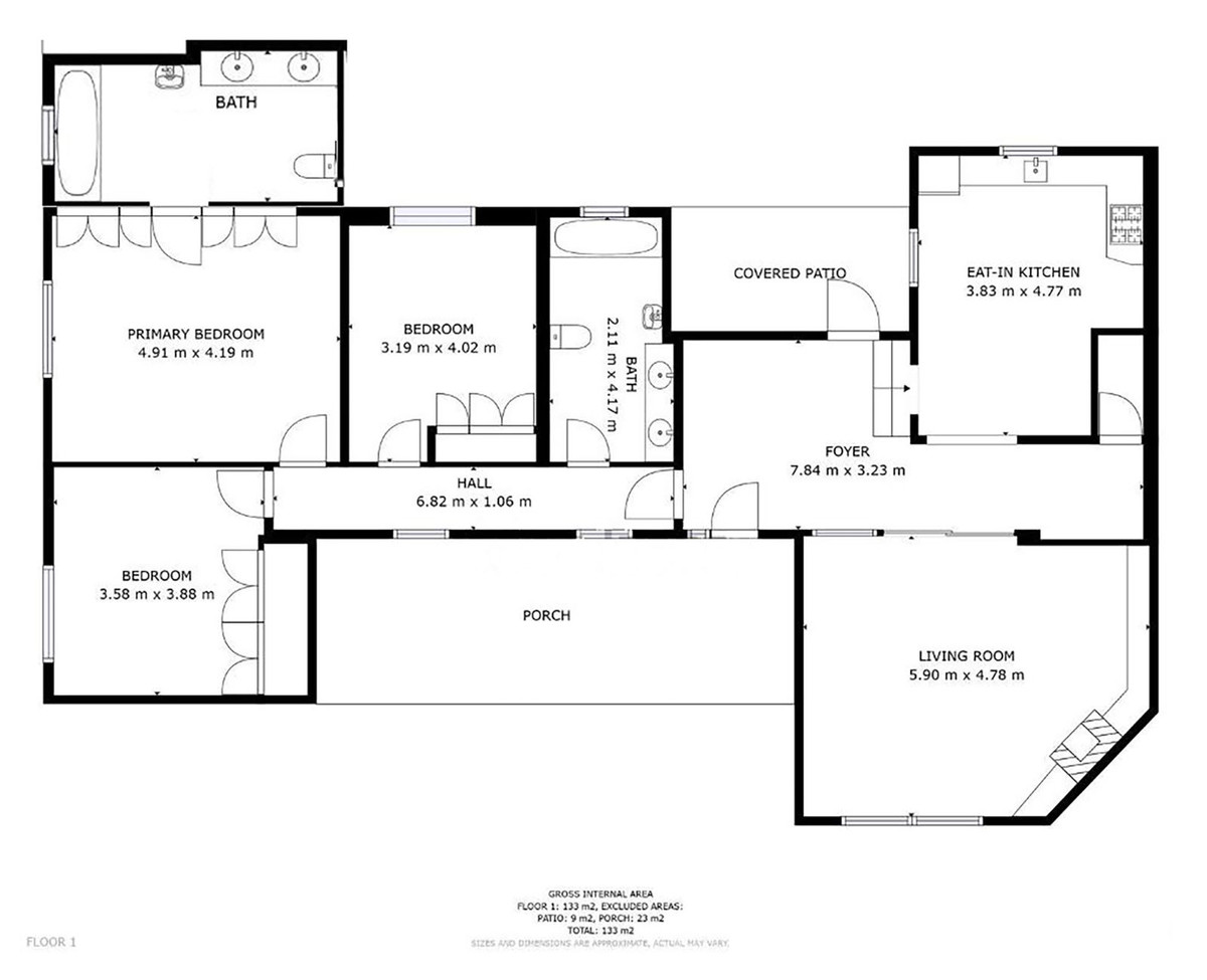 * Hovedbolig med entré, fuldt udstyret nyt køkken (2024), stue, 3 soveværelser og 2 badeværelser