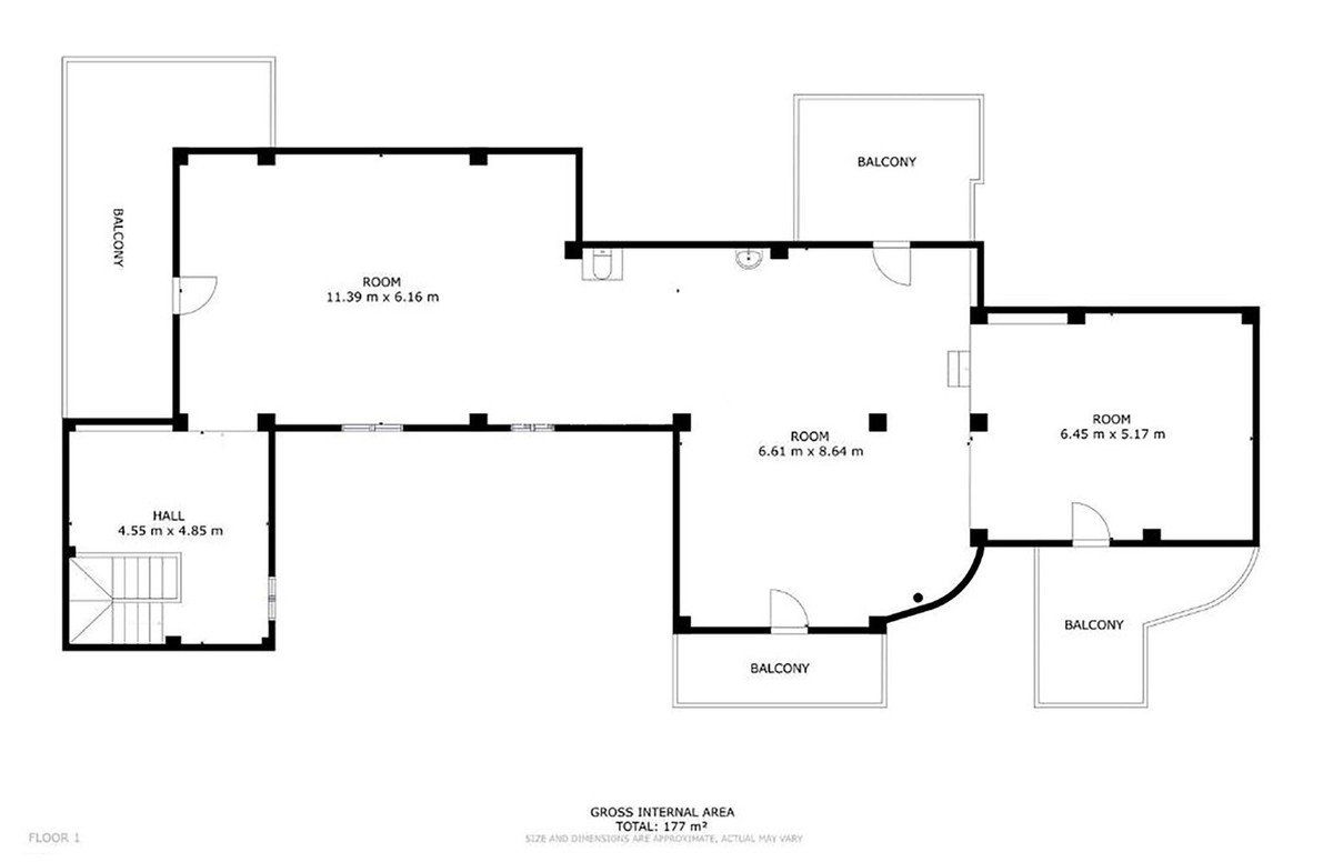 * På første sal, ca. 177 m² med forskellige altaner, kan indrettes efter eget ønske (uendelige muligheder, såsom en separat bolig, ekstra soveværelser, ...)