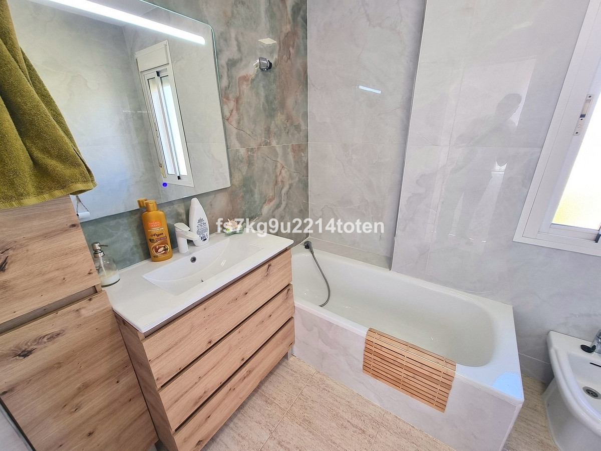 Upstairs, you’ll find a further large double bedroom with ample storage and access to a generous terrace, offering panoramic views across the surrounding countryside. A family bathroom with bathtub and overhead shower completes the upper level.