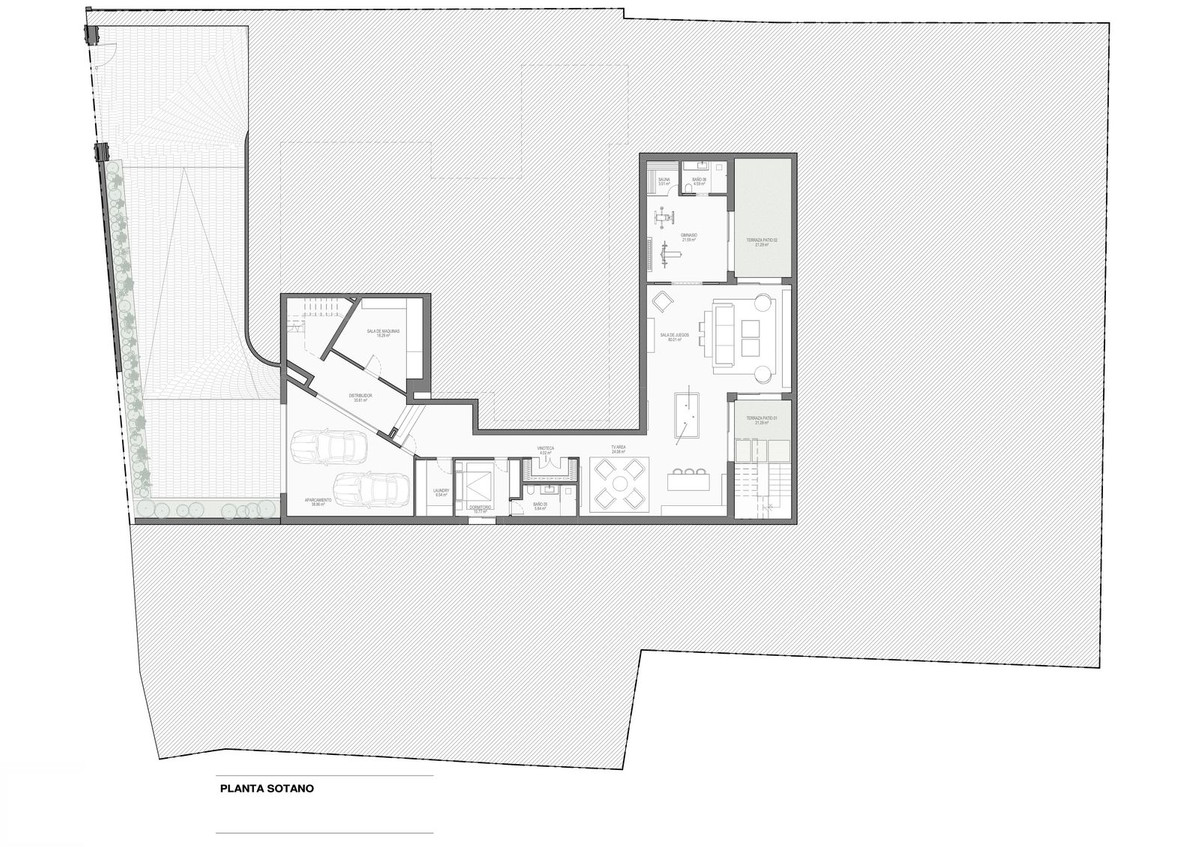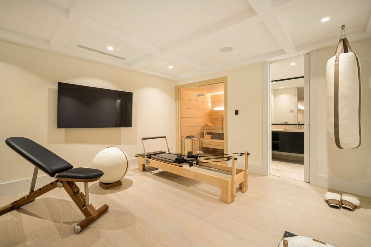 The villa is designed for both everyday living and entertaining, boasting the incredible collaborative efforts of the stellar teams from Sandon, Ames Arquitectos & GC studio. The villa offers an open-plan kitchen and living area, multiple lounge zones, and a seamless flow to the exterior terraces. A dedicated wellness area includes a gym space and sauna, while a separate cinema room and games area offer more relaxed, private entertainment. Outdoors, a custom firepit lounge, rooftop chill-out space, and full-size tennis court complete the lifestyle offering. Despite its calm, residential setting, it is just a short drive to Marbella Club, Puente Romano, and the beaches of the Golden Mile, offering the best of privacy and proximity.