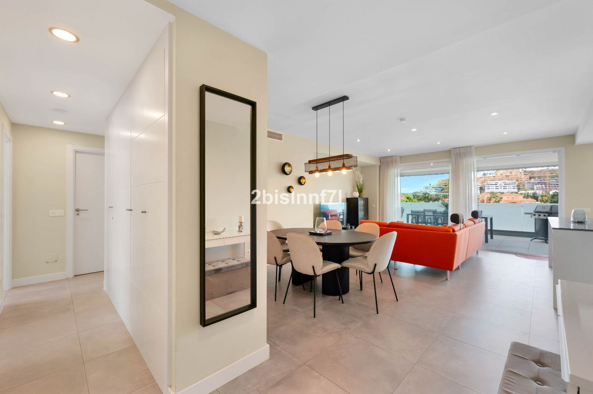 Sophisticated and elegant, semi-new apartment set within a prestigious 5-star residential complex in the vibrant heart of La Cala de Mijas. Boasting 3 spacious bedrooms, 2 bathrooms, and an open-plan designer kitchen, this home perfectly blends comfort with contemporary style. The private covered terrace offers open views to enjoy unforgettable sunsets.