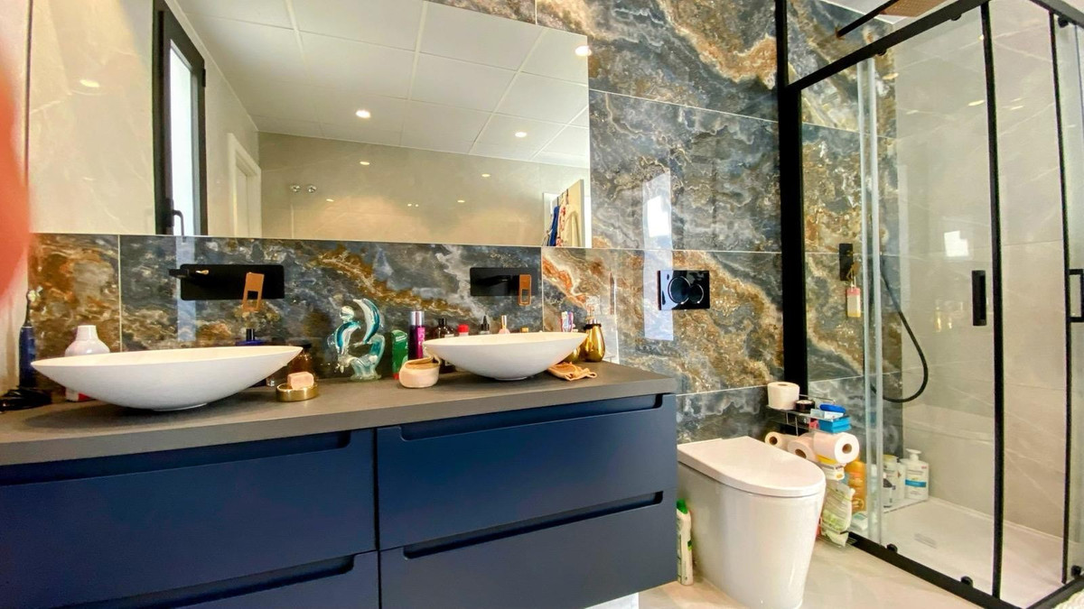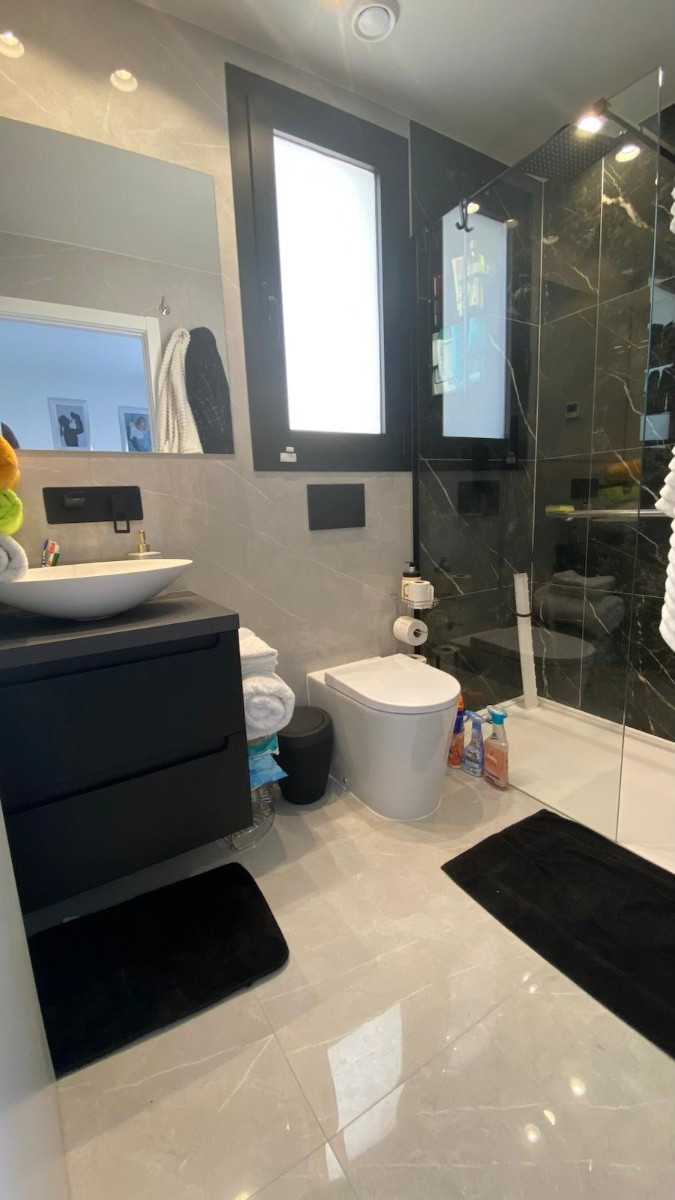 The villa features 5 elegant bedrooms and 4 full bathrooms, two of them en-suite, all with underfloor heating for optimal year-round comfort. Every space is thoughtfully designed with high-end materials and a modern, timeless aesthetic.