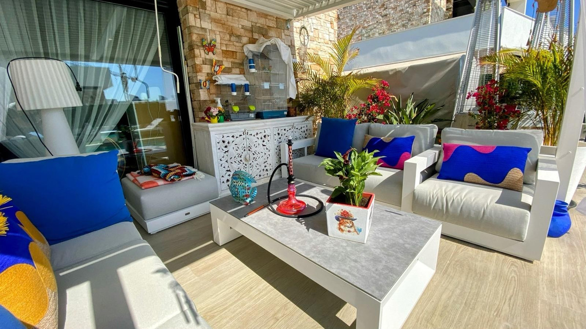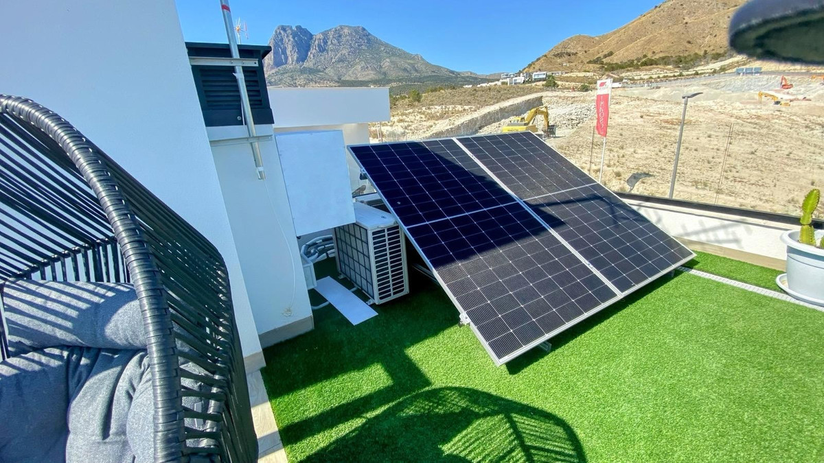 On the upper floor, a spacious solarium becomes the perfect place to disconnect, sunbathe, or enjoy dinners at sunset, all while admiring the breathtaking combination of sea and mountain views.