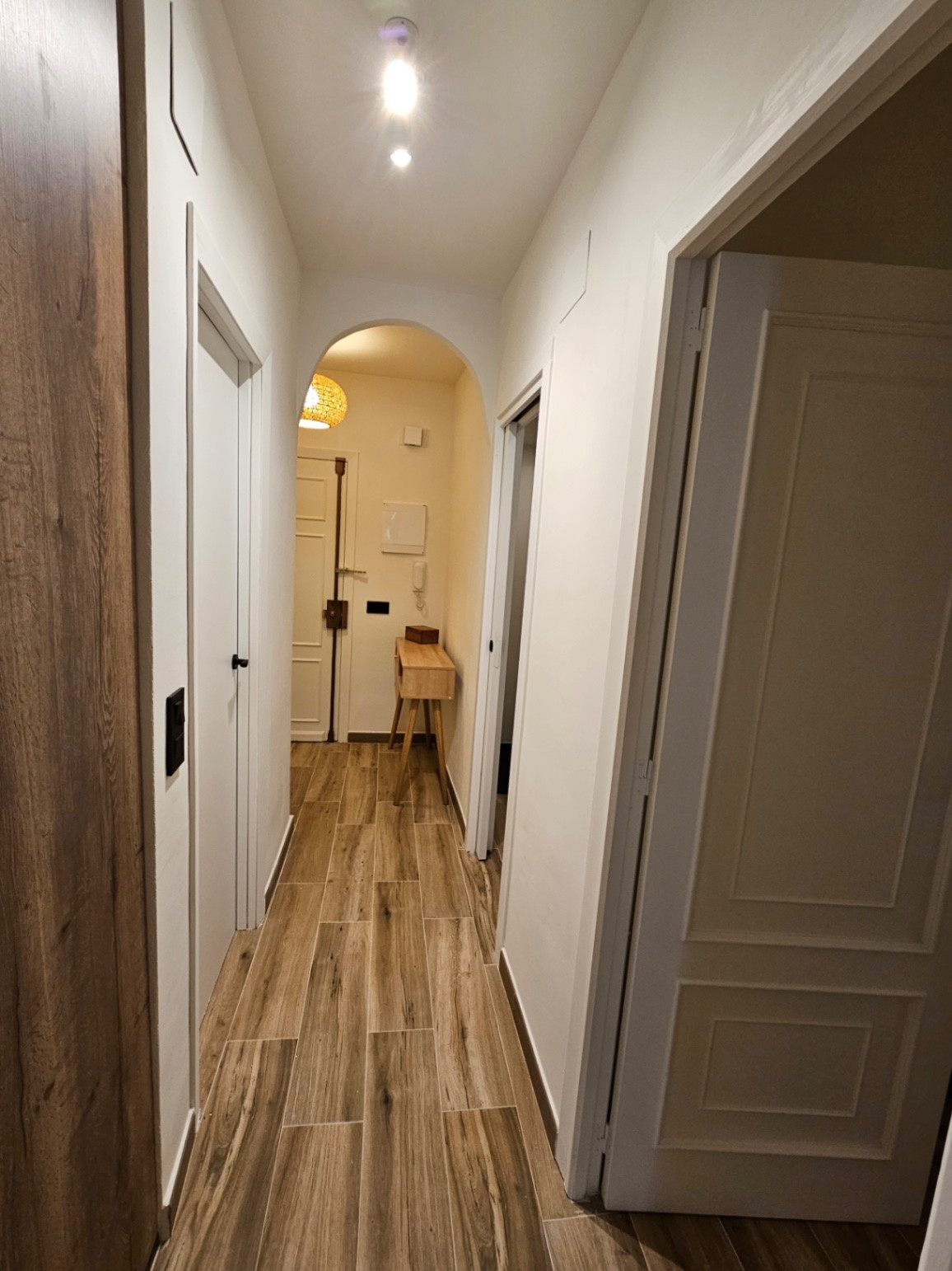 With a total area of 100 m² and a usable area of 73 m², the apartment has a thoughtfully designed layout and includes two spacious bedrooms with built-in wardrobes. The bathroom has been completely modernized with high-quality fixtures and features underfloor heating.