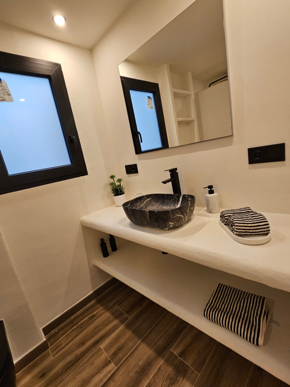 The building was constructed in 1980, and the property has been fully updated, including renewed plumbing and electrical systems. The air conditioning ensures a pleasant temperature throughout the apartment. The interior is adapted for people with reduced mobility, ensuring accessibility.