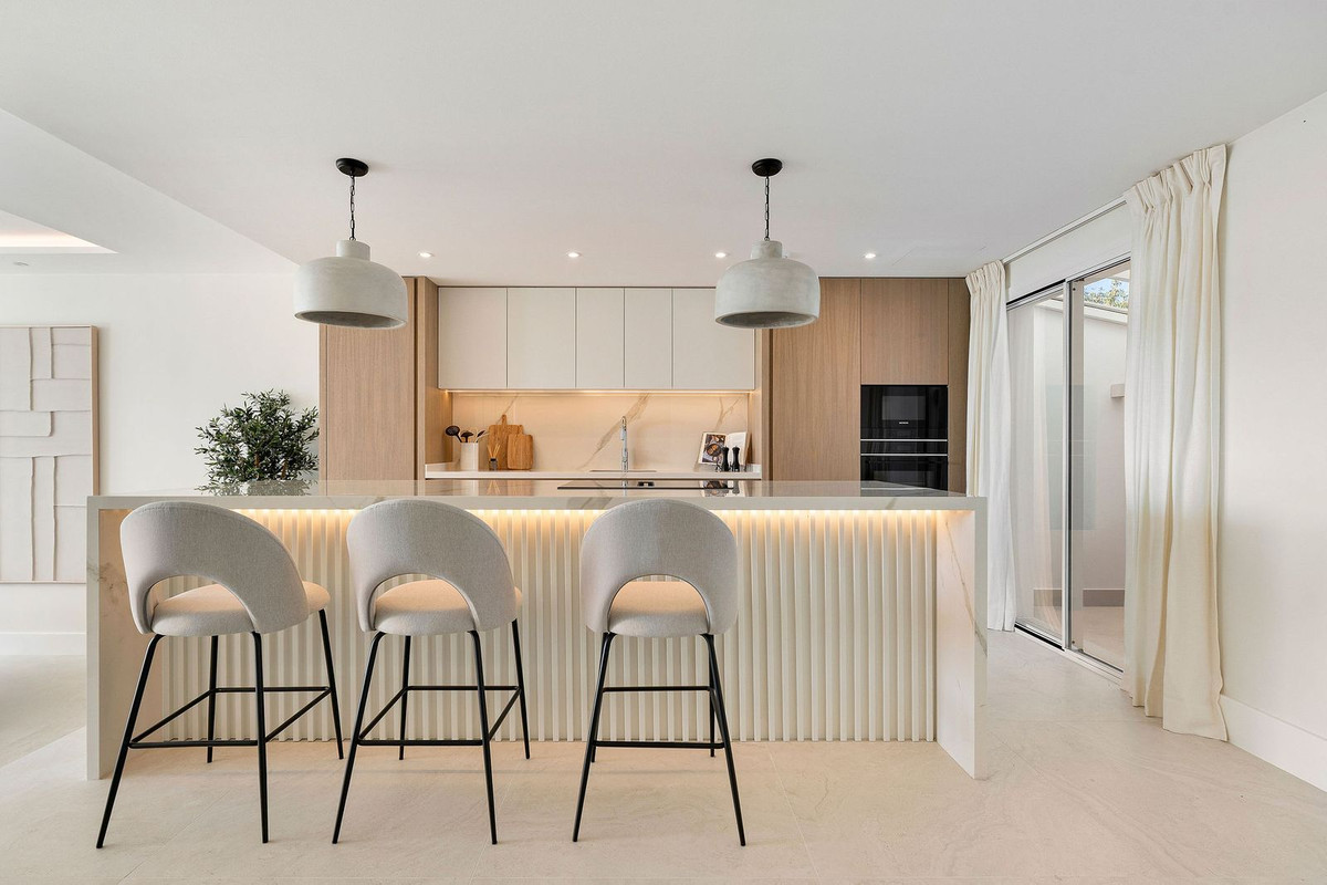 An exquisitely totally reformed townhouse located in the popular urbansiation of El Mirador de La Quinta in Benahavis. As you enter the property, you are greeted with an abundance of light, high ceilings and sea views through the extra high sliding terrace doors. The bespoke open-plan kitchen leads down to the extremely spacious living/dining room and straight out onto the covered terrace leading to the communal gardens offering stunning South-East facing views towards the sea and mountain. On the first floor you have 3 bedrooms and 3 bathrooms with the master bedroom having a generous walk in wardrobe, private terrace and a large bathroom suite with stunning views. On the third floor you have the 4th bedroom suite having access to 2 terraces also with stunning views. The townhouse was completely gutted and has been fitted with high quality materials throughout, the interior decoration and color scheme has been carefully selected creating a classy yet warm feeling. A truly magnificent townhouse in a very popular location.