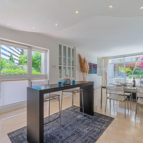 This exceptional 2-bedroom, 2-bathroom + guest toilet ground-floor apartment presents a rare opportunity to own a refined residence in one of Marbella's most desirable urbanizations—just a mile from the town center on the way to Sierra Blanca. Ideally located along the exclusive Golden Mile, the apartment offers a perfect blend of modern comfort, timeless design, and a prime location, ideal for year-round living or as a stylish holiday home.