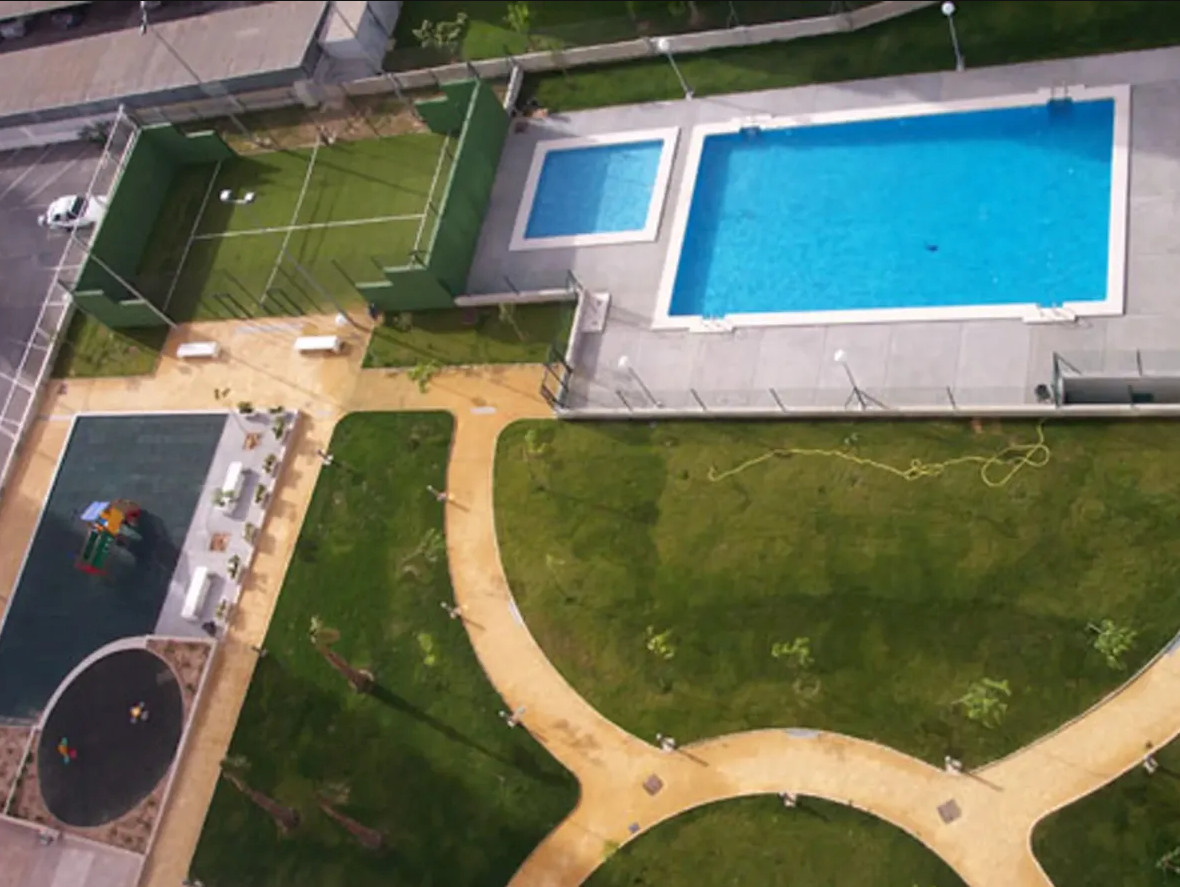 The residential complex includes a communal pool and landscaped areas, ideal for enjoying the Mediterranean climate. Its strategic location offers easy access to supermarkets, restaurants, public transport, and the famous beaches of Benidorm.