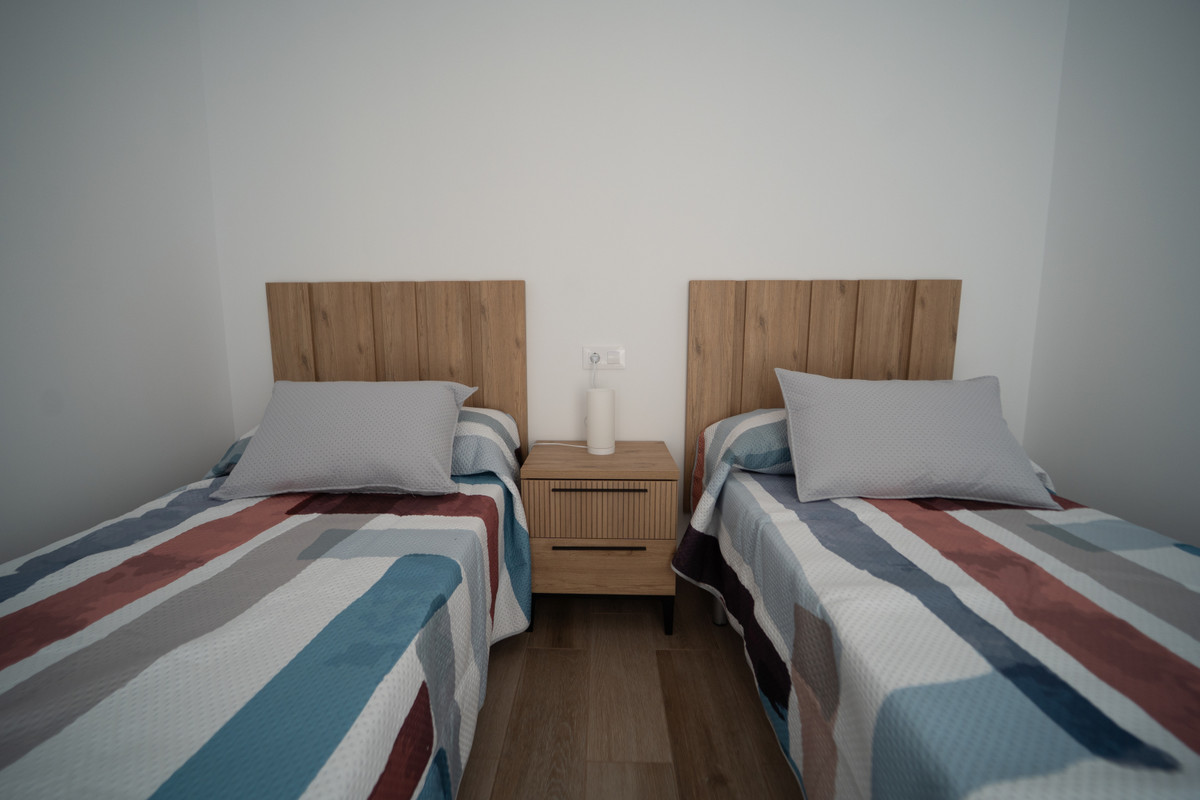 Vi tilbyder både boliger midt i komplekset og på hjørner, med forskellige orienteringer. Hver villa har 2 soveværelser, 2 badeværelser, fuldt udstyret køkken med Silestone-bordplade og hvidevarer (emhætte, keramisk kogeplade, ovn, køleskab, opvaskemaskine, vaskemaskine og mikrobølgeovn), stue/spisestue, veranda, terrasse og solarium. Privat parkering på grunden.