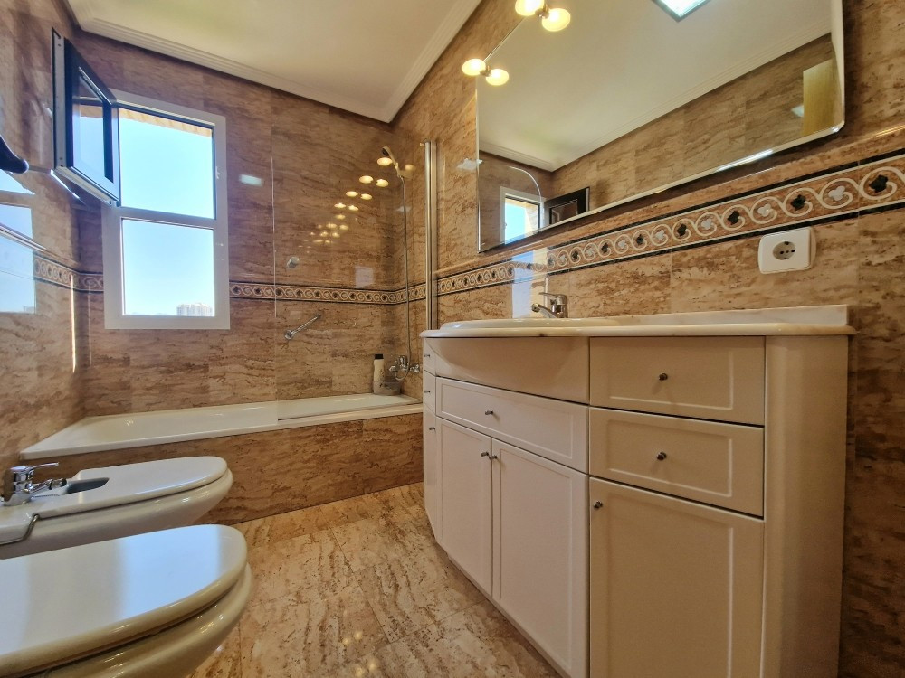 Delux Apartment on Benidorm Beach. This absolutely exclusive property stands out for its spacious and comfortable design, with a surface area of 161 m², ideal as a first or second home, or even as an investment. It has 4 bedrooms (one en suite) and 3 bathrooms. All rooms, including the living room, are completely exterior and offer spectacular views of the sea, mountains, and city, creating a perfect setting for relaxation.
