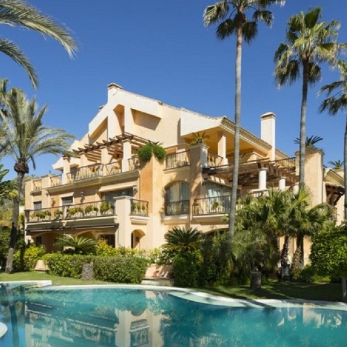 This exclusive 3-bedroom apartment is located in one of the most sought-after residential areas on the sea side, next to Puerto Banús. The apartment has three bedrooms, each with en suite bathrooms, a fully equipped kitchen and a spacious living and dining room. The spacious terrace surrounds the entire apartment and offers magnificent views of the well-maintained garden and the sea.
