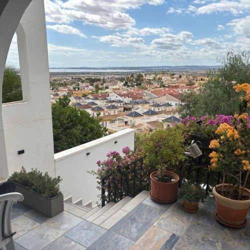 We have a beautiful 3 bedroom 2 bathroom west facing Lola style house for sale in the very popular area of Dona Pepa,  part of  Ciudad Quesada on the Costa Blanca. It is located close to many amenities including bars, restaurants, supermarkets and the long sandy beaches at Guardamar del Segura are just a 7 minute drive. The property is found inside a well established gated community and overlooks the beautiful swimming pool. The current owner has kept the home maintained to a high standard.The front of the property has a covered terrace with plenty of garden space and drive for car.