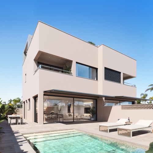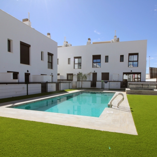 Hvert af disse hjem tilbyder rigelig plads til hele familien. Derudover kan beboerne nyde en fælles swimmingpool og opvarmet jacuzzi, ideelt til afslapning og nydelse af det varme vejr året rundt.