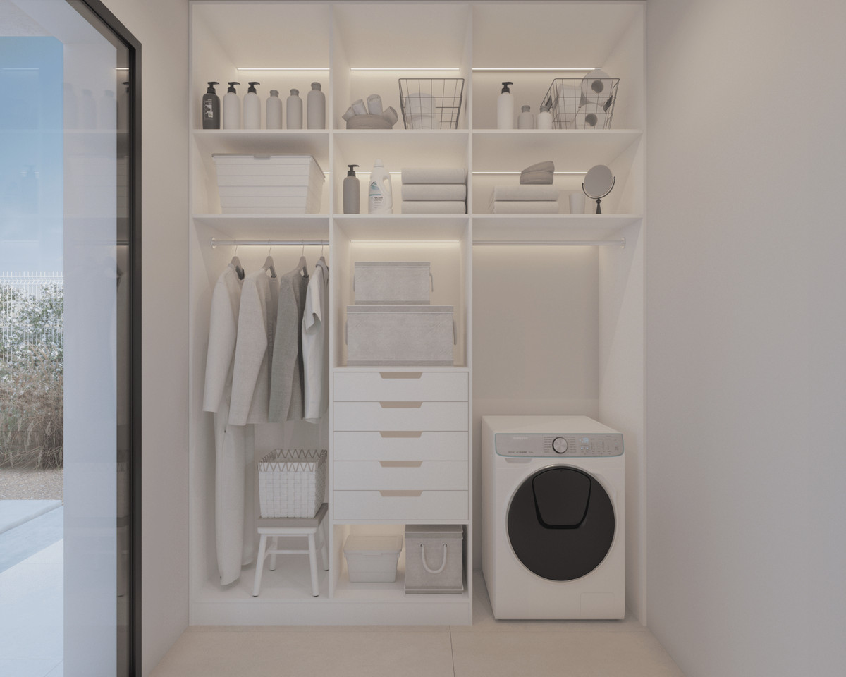 Villaer med stue/spisestue/køkken med køkkenø, 3 soveværelser, 3 badeværelser, walk-in closet og vaskerum. Fremragende kvalitet og design. 162 m² bolig på grunde mellem 700 og 1.000 m². Privat pool.