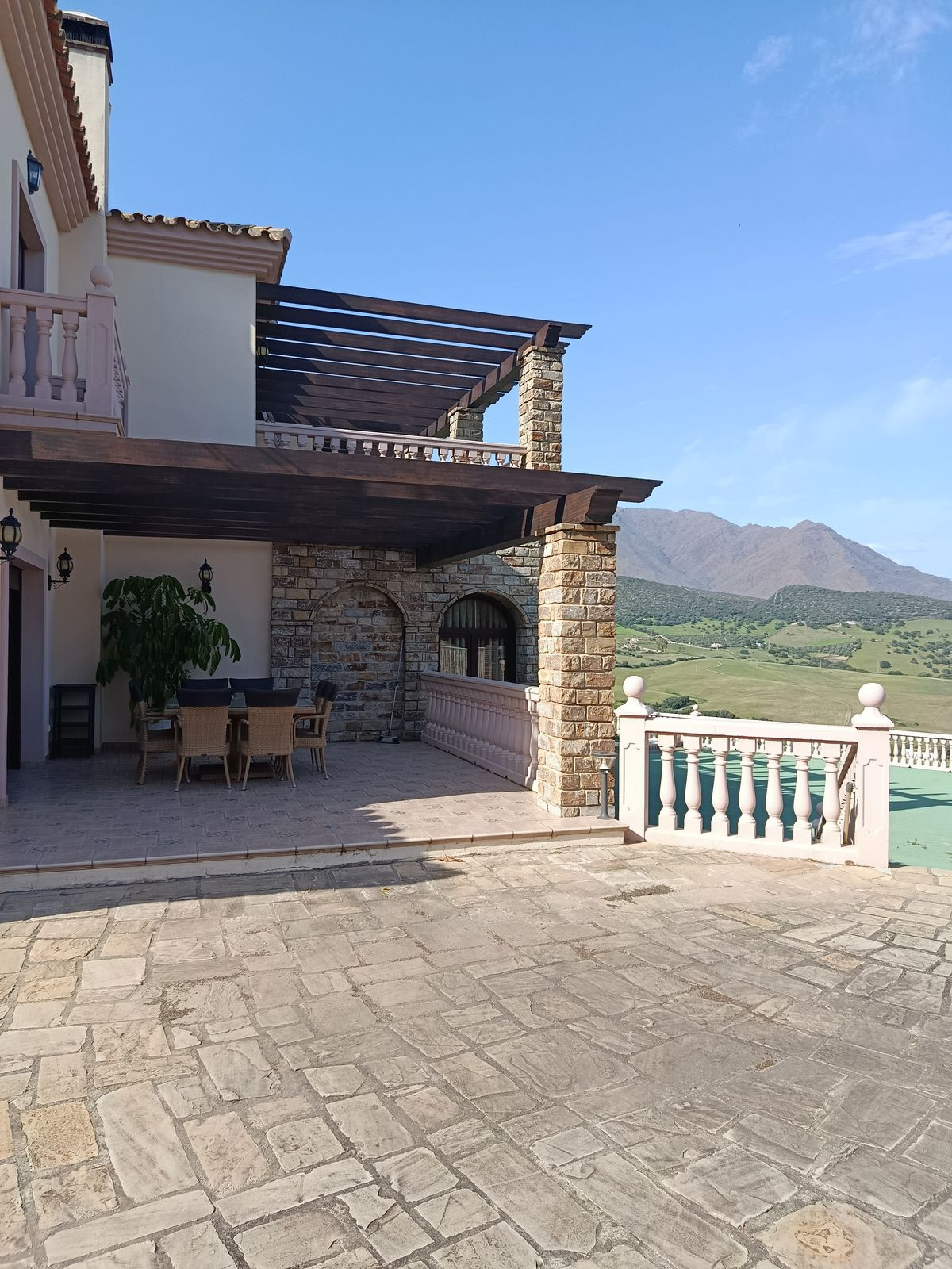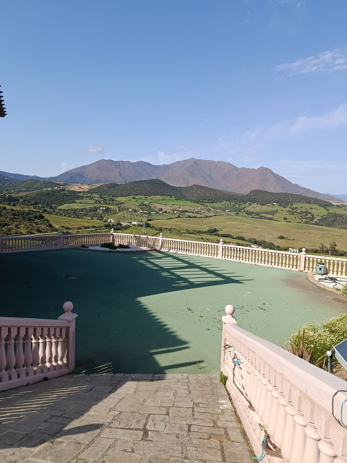 Udsigt : Hav, Bjerge, Landområde, Have, Pool, Patio, Skov, Vej.