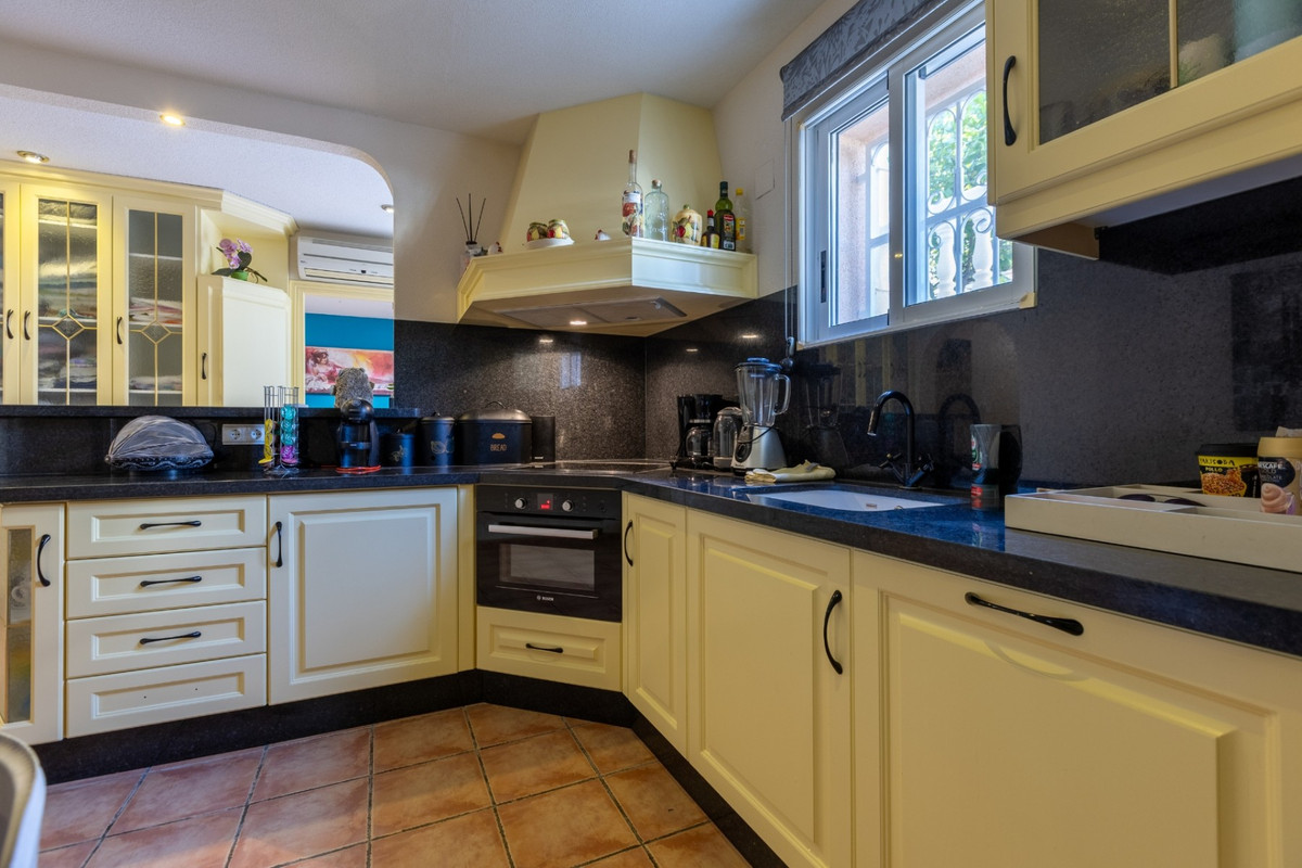 <p>The first floor is accessible both by a fixed staircase inside the house and by a separate outside door. This floor is set up as an independent living area and ideal as guest accommodation or for larger families. Here you will find a second, fully equipped kitchen with dining area, three spacious bedrooms, a bathroom with whirlpool tub, walk-in shower and toilet, and a separate storage room.</p>