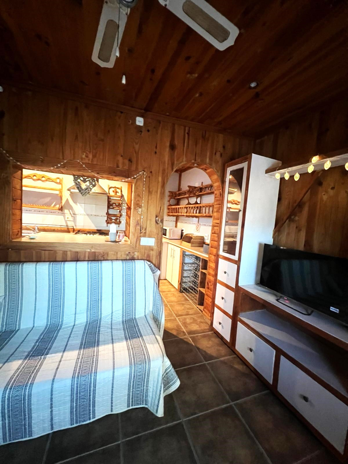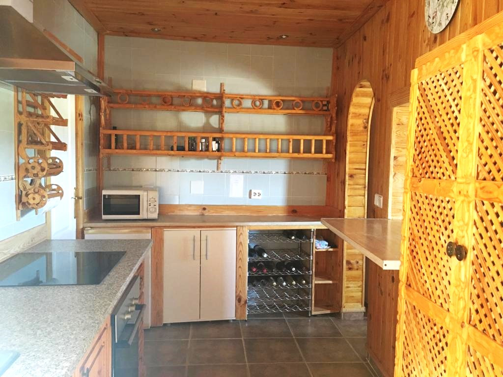 At the entrance, stairs lead to another bedroom on the upper floor and a second, sun-drenched patio ideal for relaxing. While the summers remain cool thanks to the thick traditional walls and air conditioning, the log-burning fire in the living room keeps the entire house cozy during the winter months.
