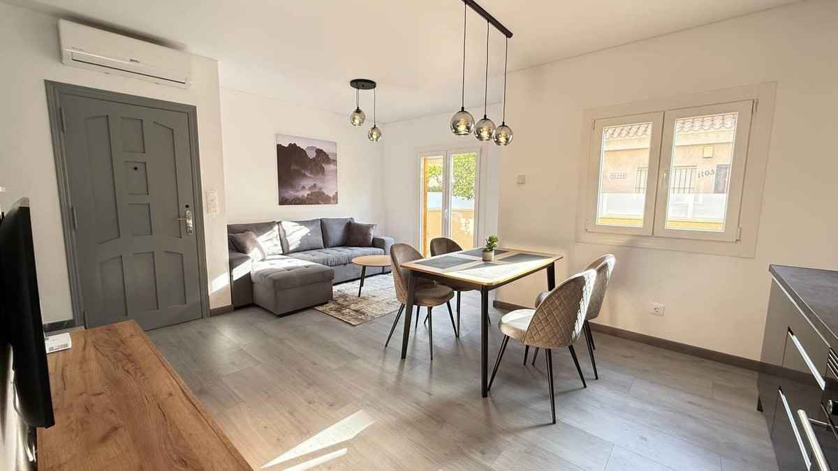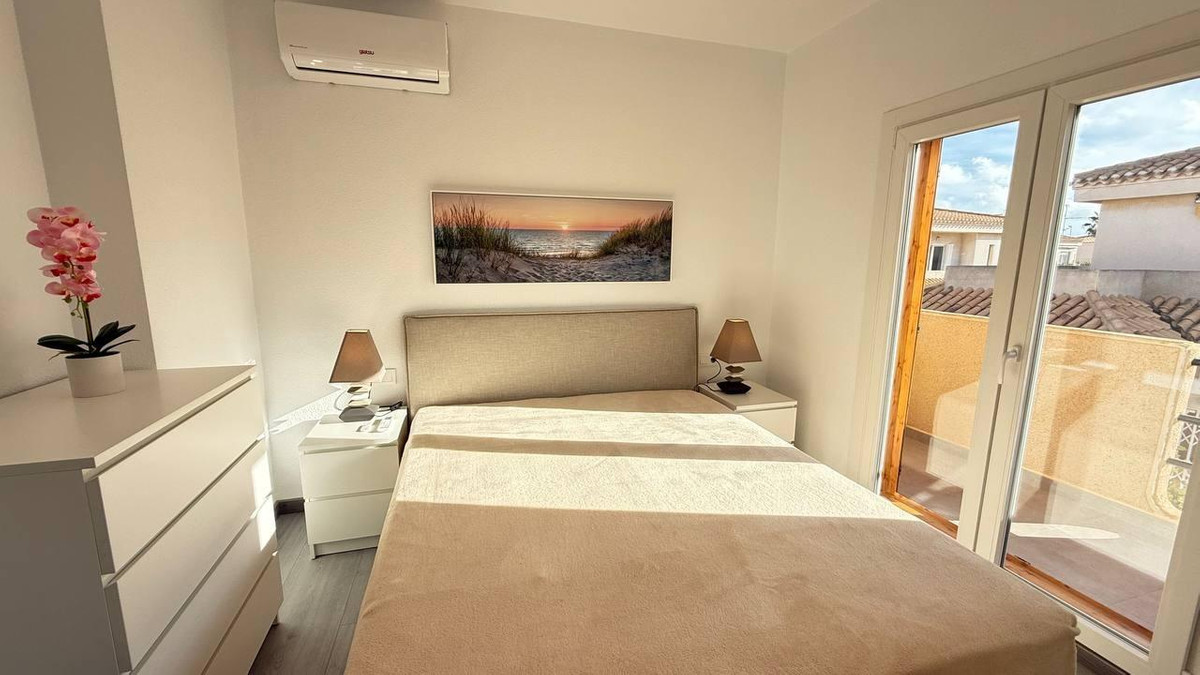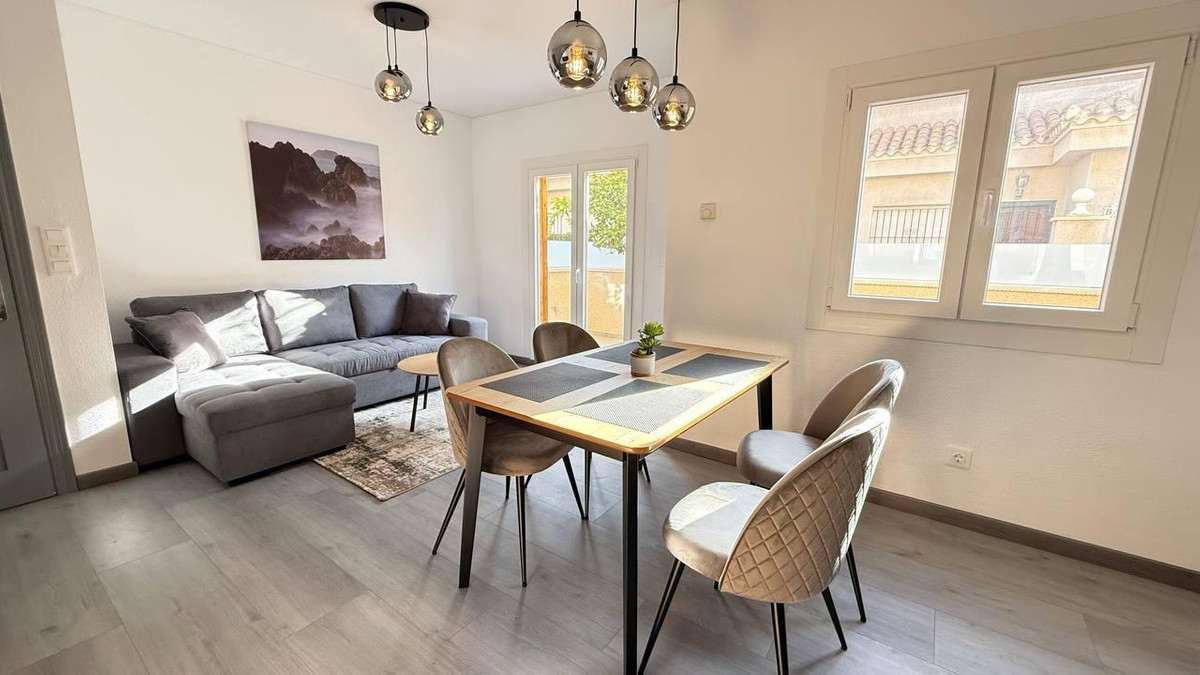 Beautiful terraced house after renovation in Orihuela Costa (Playa Flamenca), with underfloor heating throughout the house. The house is located in a gated community with a swimming pool. The area of the house is 99.00 m2., is located 1 km. from the beach, 3 bedrooms, 2 bathrooms, south orientation. This house will be an ideal option for those who are looking for a ready-to-move-in home.