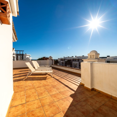 Magnificent PENTHOUSE with LARGE TERRACE and SOLARIUM. Facing southeast, this stunning property enjoys WONDERFUL SEA and GOLF VIEWS. Located in a well-maintained urbanization, it sits in one of the most sought-after areas, surrounded by prestigious golf courses. Tucked away from noise, it offers peace and privacy while being just a 5-minute drive from the beautiful beaches of Casares Costa, the charming village of Sabinillas, and the vibrant Puerto de la Duquesa, where you'll find a wide range of shops, restaurants, and leisure activities. The property includes a lift from the garage and access to a communal pool. An excellent opportunity not to be missed.
