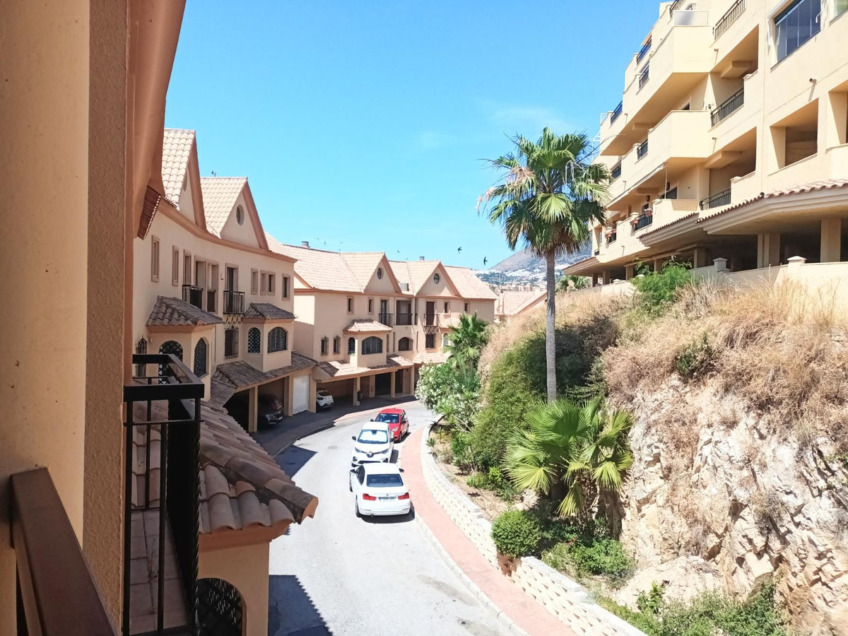 The first floor features a bright lounge and dining area, a fully equipped kitchen, two bedrooms, two bathrooms, and a large terrace offering stunning mountain and golf course views.
