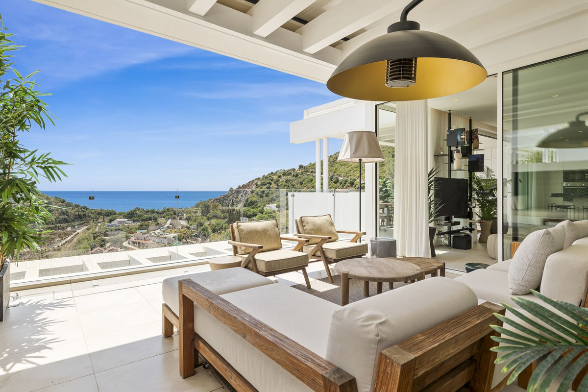 Denne sofistikerede bolig er badet i naturligt lys og har en rummelig solrig terrasse med en eftertragtet sydvestlig orientering, der tilbyder uforstyrret udsigt over både Middelhavet og Sierra de las Nieves-bjergene. Gulv til loft-skydedøre forbinder den åbne stue og det store soveværelse direkte med terrassen, hvilket skaber en sømløs overgang mellem inde og ude.