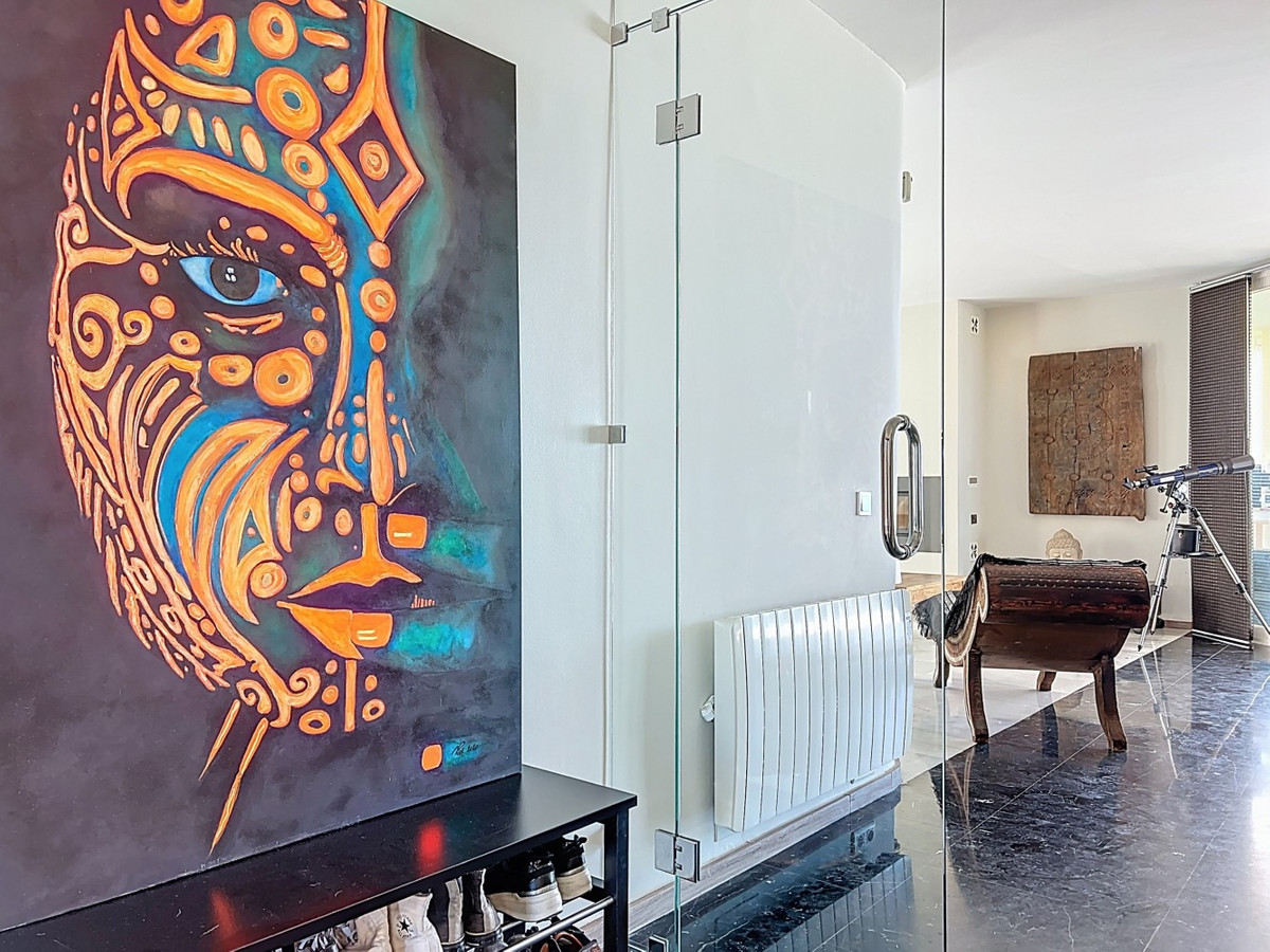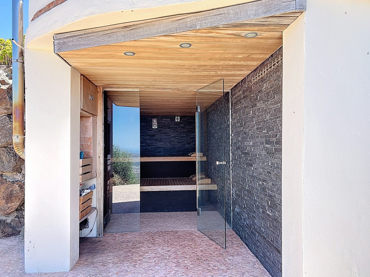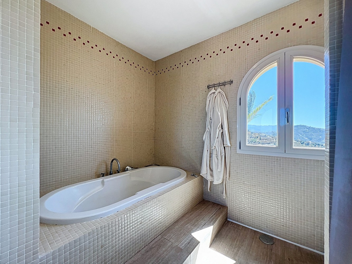 Forestil dig at vågne op hver dag til Middelhavets beroligende omfavnelse i denne udsøgte villa. Dette hjem er et sandt arkitektonisk mesterværk og tilbyder en uovertruffen livsstil, der problemfrit kombinerer rummeligt interiør med ærefrygtindgydende udsigter, der strækker sig helt til horisonten. Opholdsstuen byder dig velkommen med en overflod af naturligt lys takket være gulv til loft glasskydedøre, der perfekt indrammer den fascinerende udsigt over det azurblå hav. Det åbne design skaber et ideelt flow til både intime sammenkomster og storslået underholdning, der udvisker grænserne mellem indendørs luksus og udendørs paradis. For den kulinariske entusiast er gourmetkøkkenet en drøm, der går i opfyldelse, udstyret med topmoderne apparater og rigelig plads til at skabe mindeværdige måltider. Spis under åben himmel på den store terrasse, hvor den blide havbrise forstærker hvert øjeblik. Den overdådige mastersuite på 32,5 m2 tilbyder et roligt tilflugtssted med panoramaudsigt over havet. Start din dag i det spa-lignende badeværelse, et sandt vidnesbyrd om luksus og komfort. Den private balkon er ideel til at nippe til morgenkaffen eller nyde en aftencocktail, mens du ser solen dykke ned i havet.  Udenfor er den terrakottabelagte udendørs terrasse din personlige oase. Nyd den varme spanske sol, vær vært for uforglemmelige fester, eller fortab dig i den fascinerende udsigt over kysten. Ud over skønheden tilbyder denne villa en sjælden mulighed for dem, der ønsker at starte en virksomhed, som et B&B. Med 4 udlejningsværelser, hver med eget badeværelse og indgang, er ejendommen allerede blevet drevet med succes som et B&B, der kun har modtaget strålende anmeldelser. Ud over udlejningsværelserne er der et privat soveværelse på første sal med eget badeværelse og et andet soveværelse med badeværelse i kælderen. Det fuldt udstyrede køkken indeni og det vidunderlige udekøkken giver alle de nødvendige faciliteter til at drive en succesfuld virksomhed, mens den store underjordiske garage giver masser af plads til opbevaring. Denne ejendom ligger i Algarrobo, Málaga, og sikrer nem adgang til faciliteter i verdensklasse, uberørte strande og rige kulturelle oplevelser, alt imens den tilbyder de perfekte omgivelser til at forkæle sig selv med middelhavslivet. Uanset om du leder efter et luksuriøst familiehjem, en forretningsmulighed eller blot et stykke paradis, leverer denne villa på alle fronter. Dette er mere end bare et hjem; det er en livsstil. Omfavn toppen af middelhavslivet i denne ekstraordinære villa - din drøm om at eje et stykke paradis er nu inden for rækkevidde. Gå ikke glip af chancen for at løfte dit liv til nye højder af luksus, skønhed og muligheder. Vi er glade for snart at kunne præsentere denne drømmeejendom for dig, enten personligt eller via virtuel visning. Fordi denne verden er unik - ligesom vores Axarquía. I Andalusien. På Costa del Sol. Her, på livets solside...