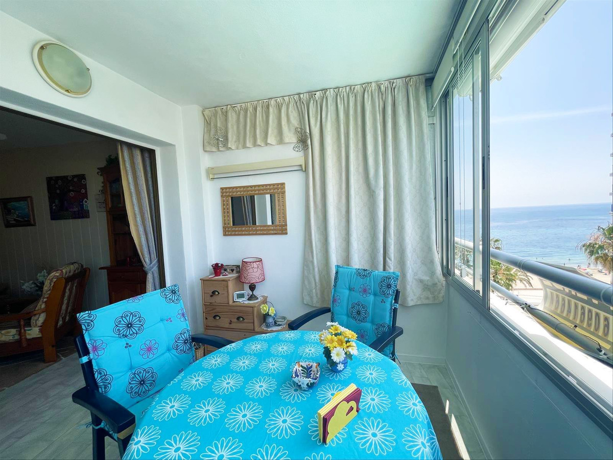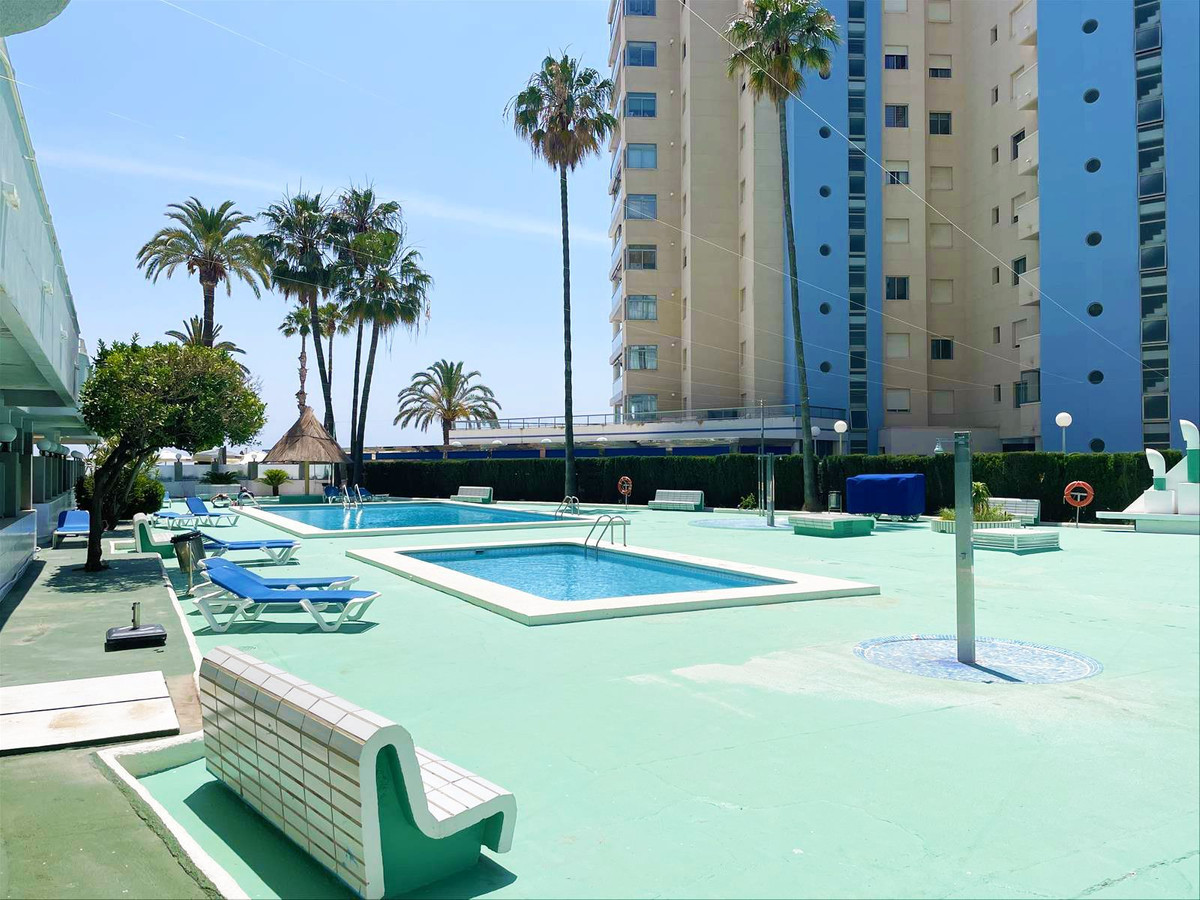 One-bedroom beachfront apartment for sale in Calpe, Costa Blanca, with a communal pool and stunning sea views, just 20 meters from the beach.