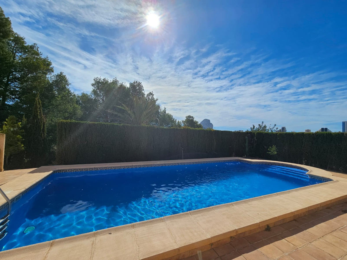 Welcome to this charming natural stone house, built in 1800 and renovated in 2002 with high-quality materials! Located on a 3,900 m² plot in Calpe, this estate offers a unique and character-filled environment, just 1 km from Arenal beach, about a 20-minute walk, and 400 meters from the Tennis Club. The south-facing orientation ensures light and sun all day long, creating a warm and welcoming space. Upon arrival, you can easily access through the electric sliding door or the pedestrian gate. You will find a covered garage with space for two cars, plus additional parking space outside. To the right, there is an old natural water well with its classic basin, ideal for those who appreciate traditional charm; it is currently not connected, but there is a possibility to connect it with a pump, and it is closed and fenced for greater security, separate from the house. The pool, pre-installed for heating, invites you to enjoy it at any time of the year. It also has an outdoor shower, a WC in a separate shed where the pool pump is located, and a storage room. The house has 4 bedrooms, all with heating/cooling air conditioning. On the ground floor, there is one bedroom, and on the upper floor, there are three more, two of which are connected by a door that leads to a shared room with double beds and a spacious storage room. The 3 bathrooms include one with a tub and the other two with showers. Central heating throughout the house, along with a safe system in one of the rooms, provide comfort and security. Notable features include built-in wardrobes with ample storage capacity, ceiling fans, shutters and mosquito nets on all windows, and Mobila wooden carpentry with nice views. The independent kitchen is fully equipped and has a separate pantry. The living room with a closed fireplace creates a warm and cozy atmosphere. Outside, you can enjoy an inner courtyard with a laundry area, perfect for relaxing with a coffee on windy days. The outdoor area also includes a barbecue, a birdhouse for bird lovers, a fenced area with a doghouse, and a covered porch that can be glazed, ideal for enjoying the landscape and the climate. Additionally, there is an original wood-fired oven, which adds a rustic and authentic touch. From the property, you can enjoy wonderful views of Calpe and the Peñón de Ifach, making this house truly special. Without a doubt, it is a home that combines history, comfort, and natural beauty, perfect for enjoying a comfortable and charming life. Don't hesitate to contact us to visit it!