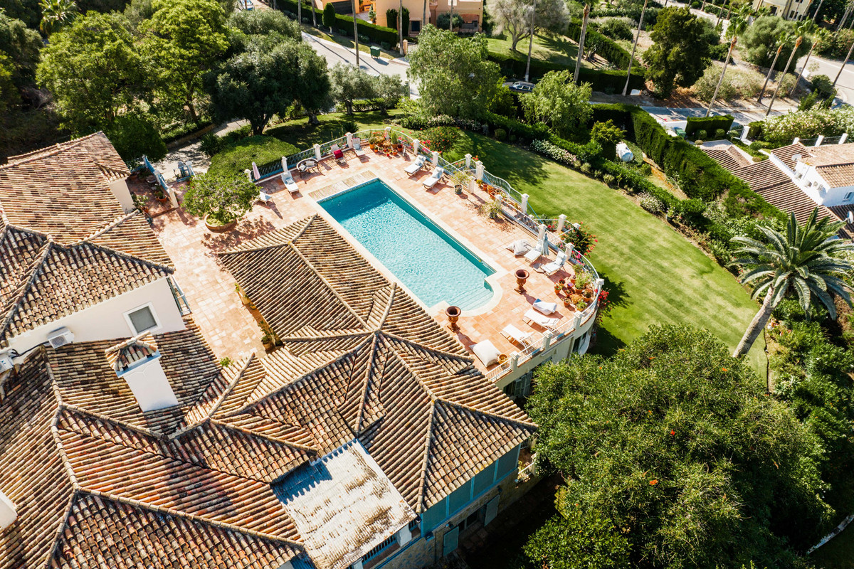 Situated in a quiet location, this southeast-.facing villa comprises, on the ground level: entrance porch, hall, living room, formal dining room, large kitchen with a sitting area and fireplace, pantry, laundry room, guest toilet, master bedroom with dressing rooms and bathroom, and an office with an adjoining bathroom. There is also a garage for two cars, above which is a guest apartment including a bedroom, bathroom, and kitchenette. Access to the mature garden with swimming pool.